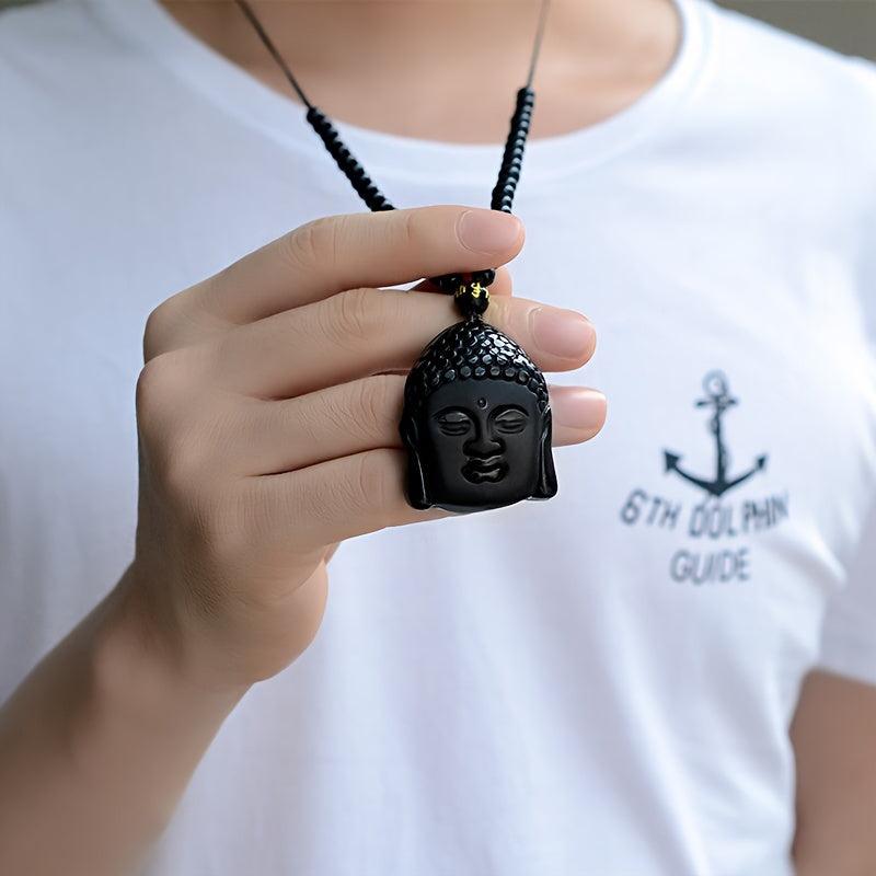 This bohemian style pendant necklace features a character head design in durable resin material with an adjustable bead chain. Suitable for both men and women.