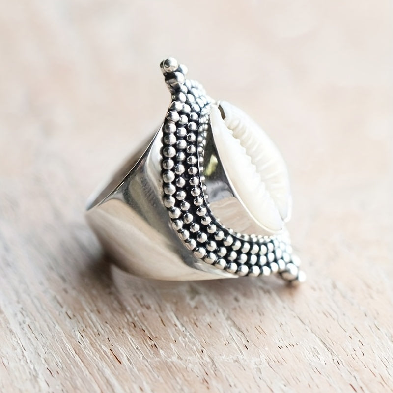 Elevate your style with this boho shell ring made of natural shells. Perfect accessory for a joyful summer look.