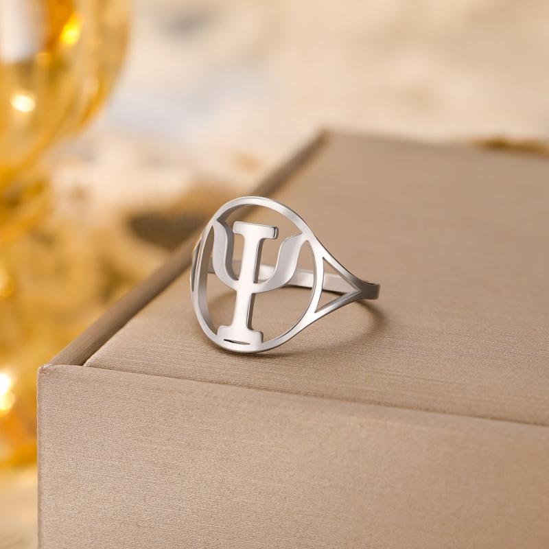 This boho style stainless steel ring features a PSI symbol design, making it an ideal wedding or anniversary gift for your loved one.