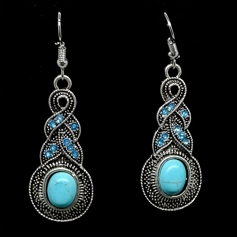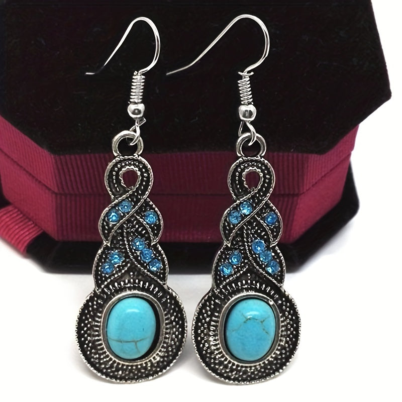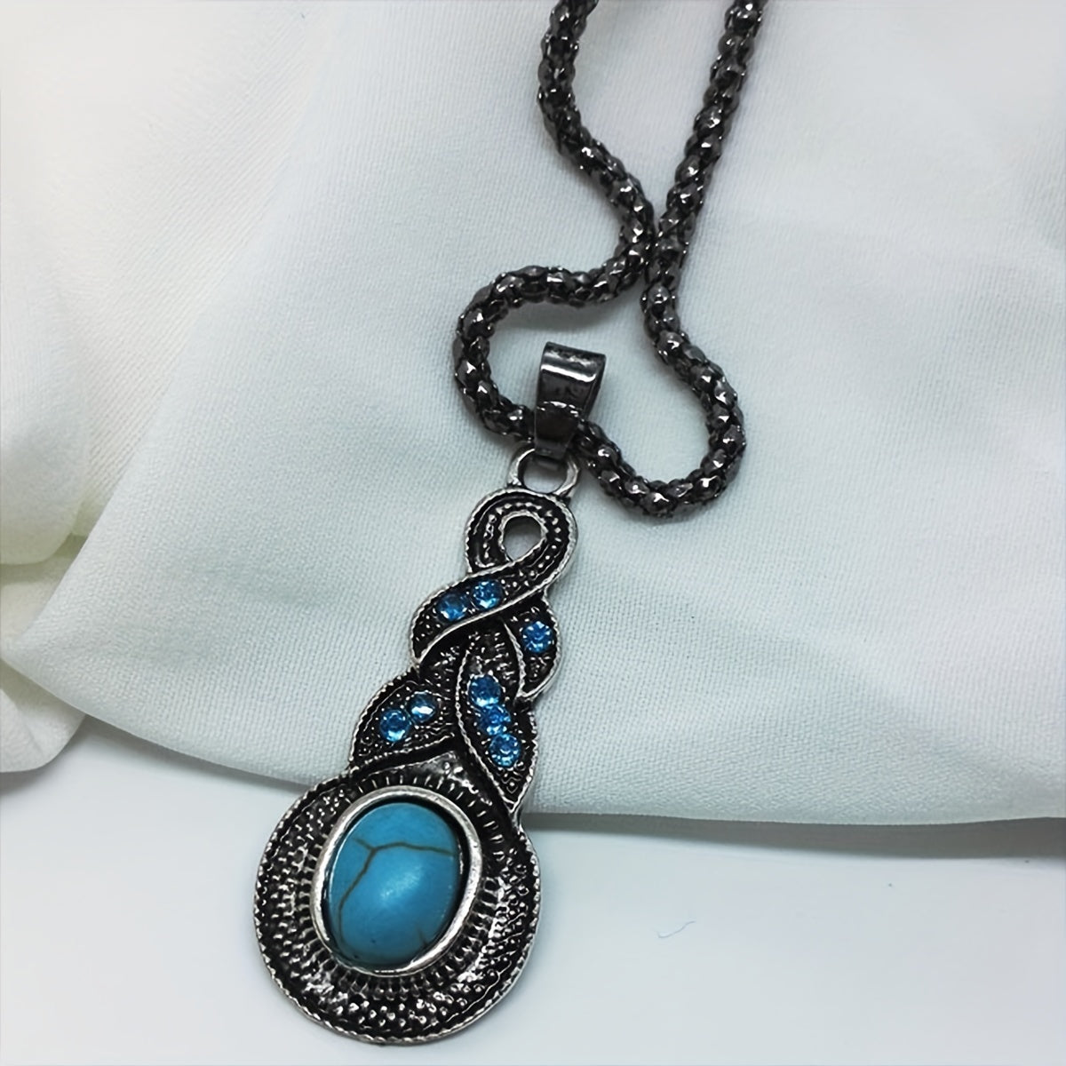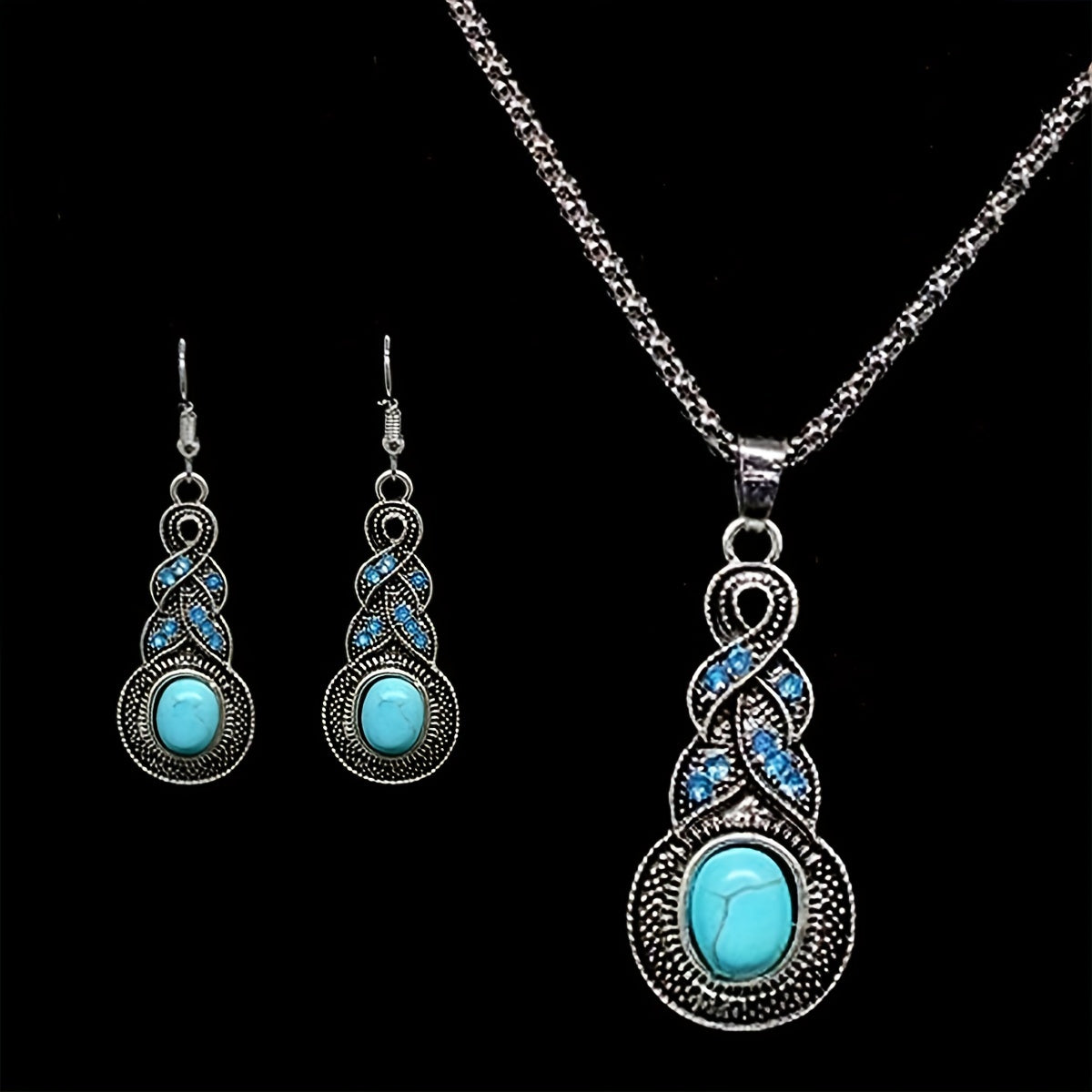 Complete your daily outfits with this boho style jewelry set featuring inlaid turquoise stones. A perfect dainty birthday gift for females.
