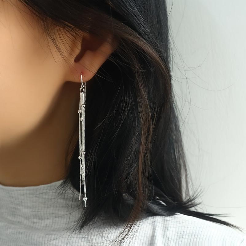 Make a statement with these boho tassel dangle earrings featuring silvery beads and a vintage-inspired design. The copper hoops add a touch of elegance to any outfit.