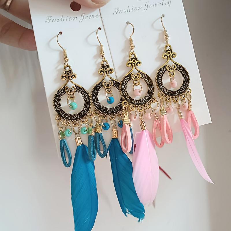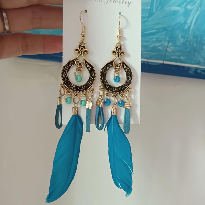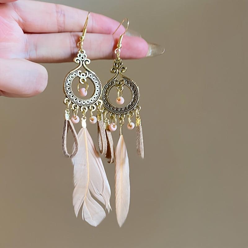 Accessorize your party or carnival outfit with these bohemian tassel feather earrings. Featuring beaded accents, these vintage-style earrings are a perfect accessory.