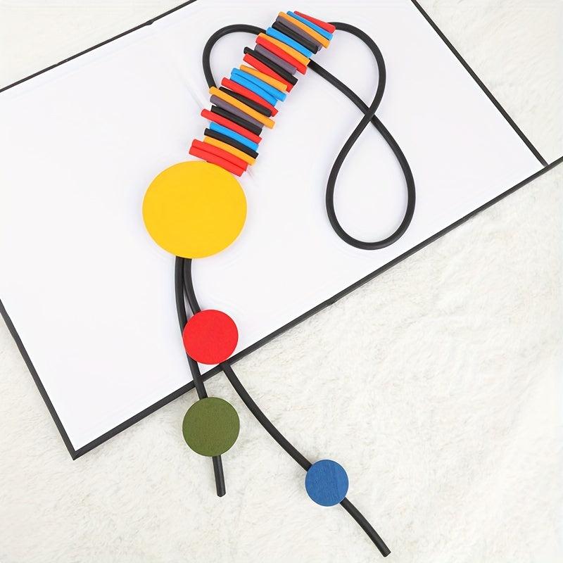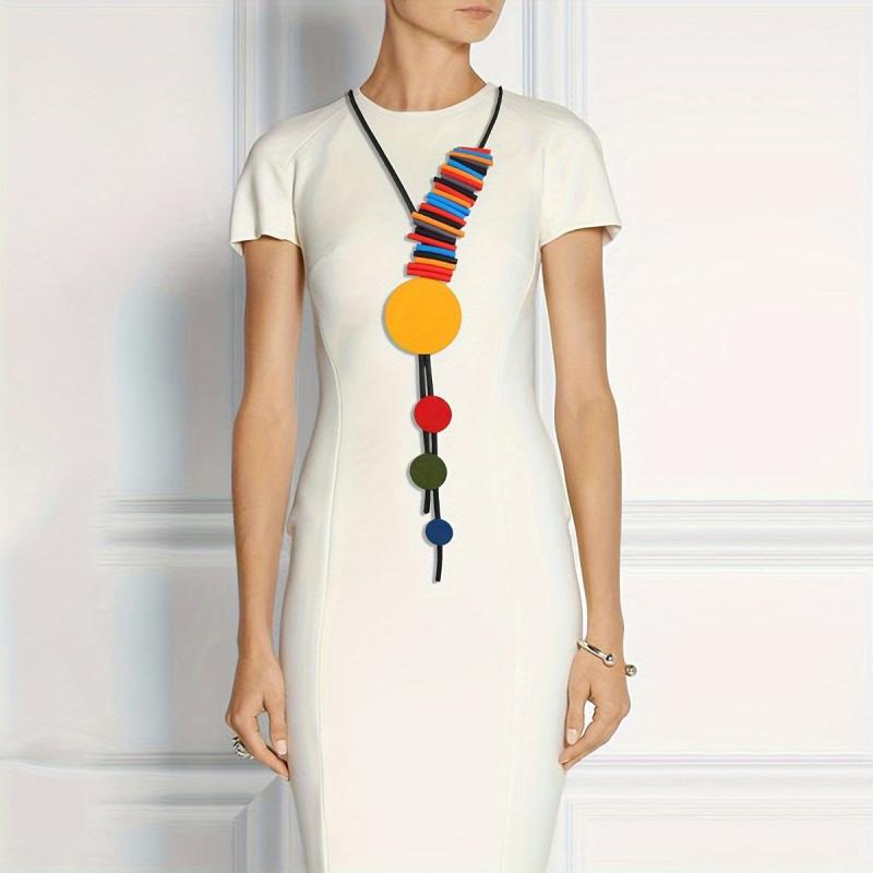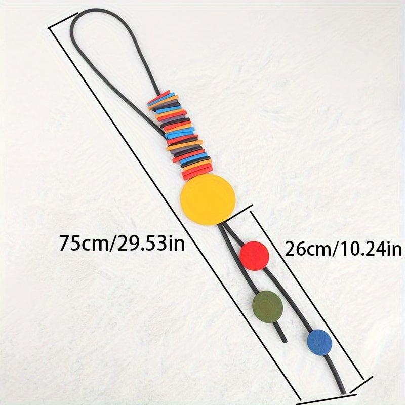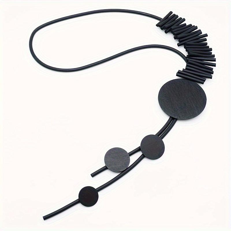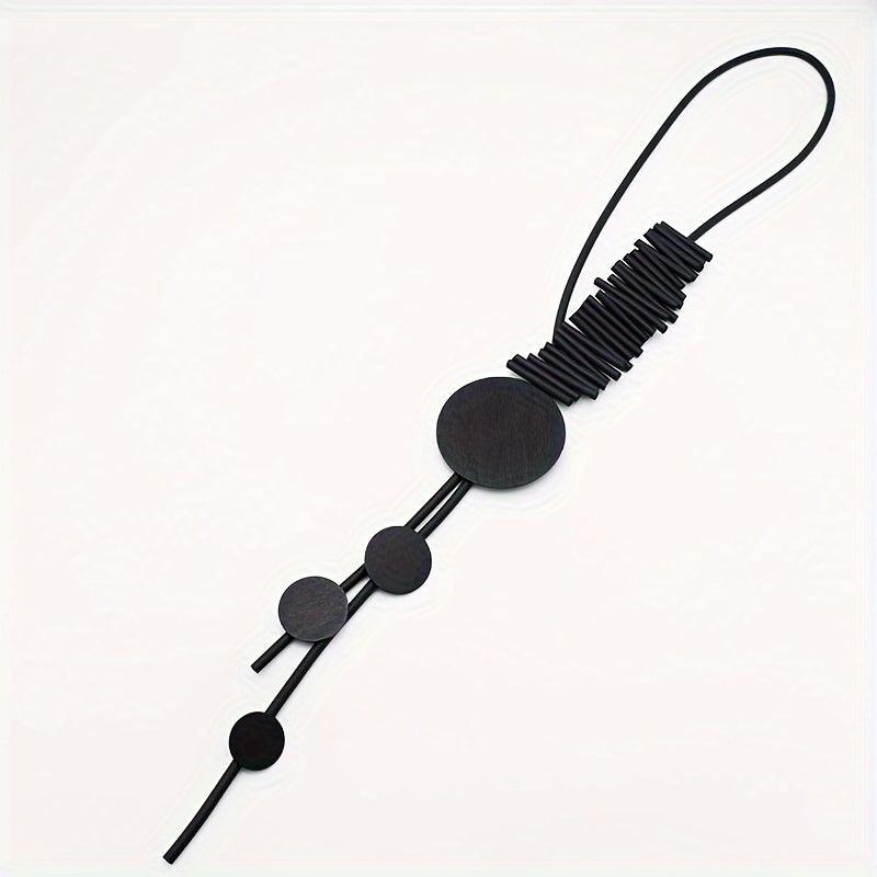 Add a touch of boho tribal style with this long Y shape rubber necklace. Perfect for casual wear or as a statement piece.