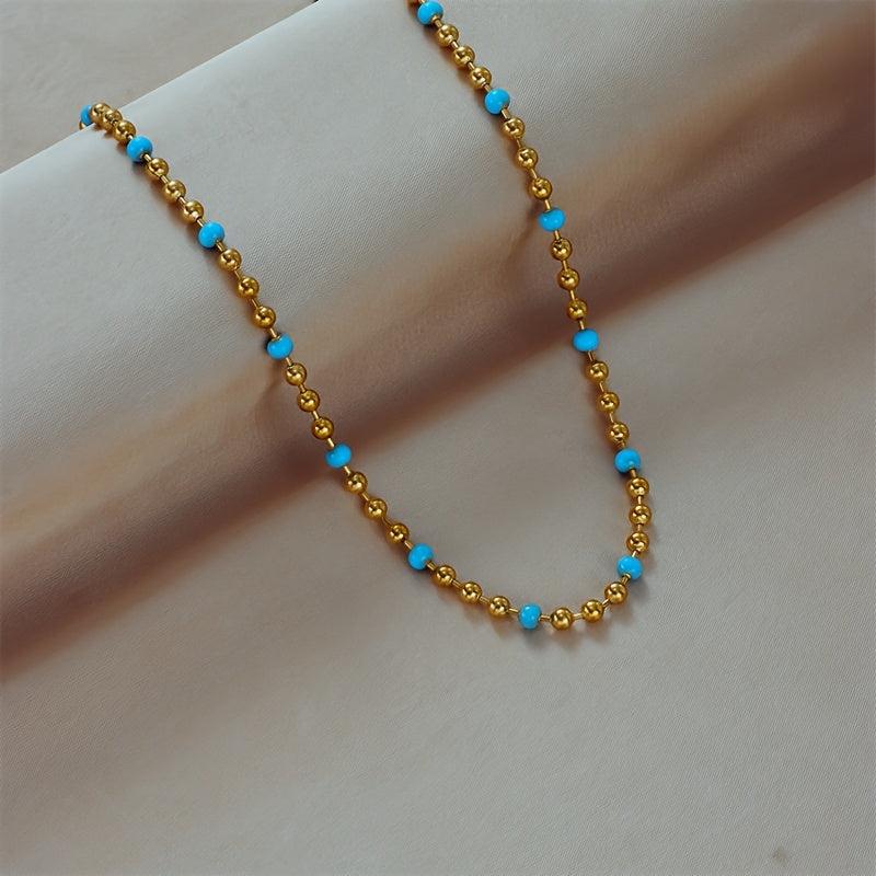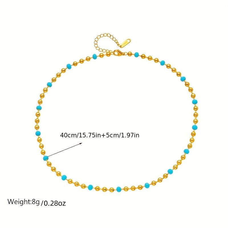Elegant vintage-inspired turquoise bead pendant necklace that adds a touch of French retro flair to your look. Made of stainless steel, this versatile accessory is perfect for parties and music events all year round.