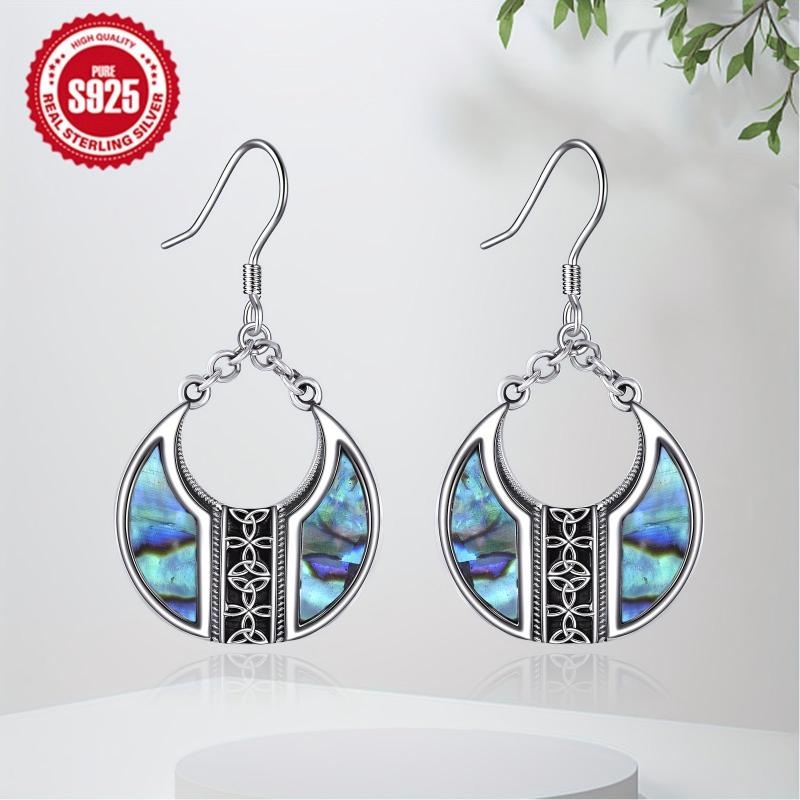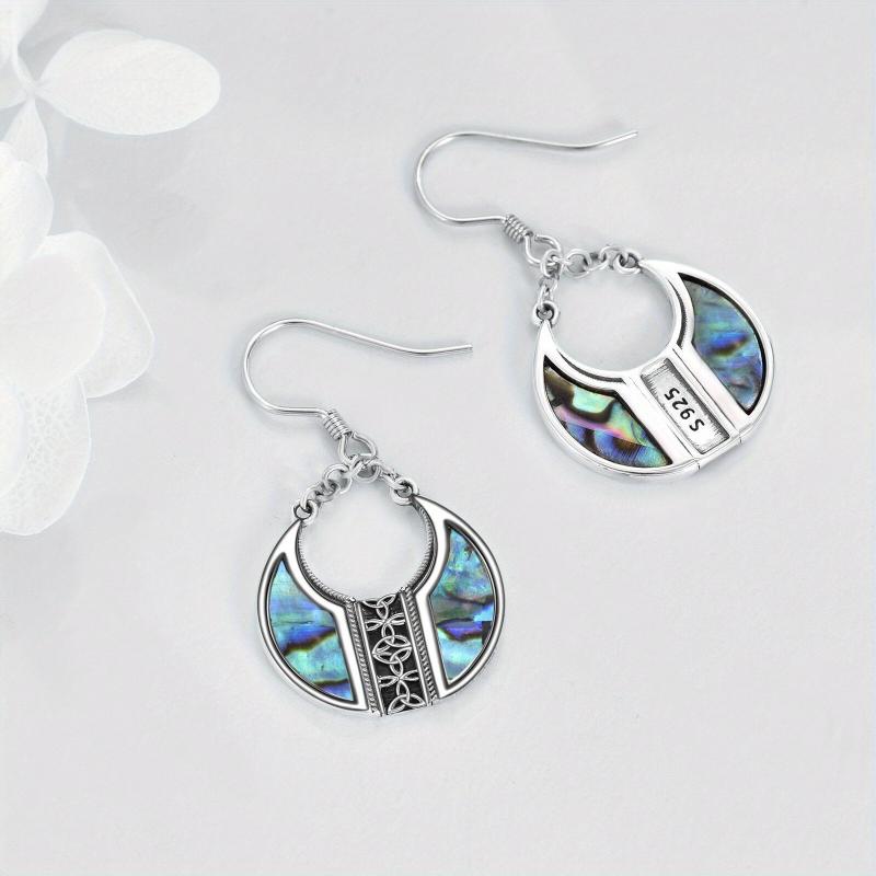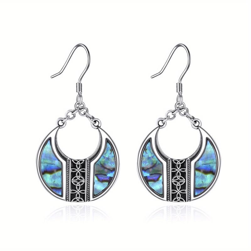 These bohemian earrings feature a sterling silver Celtic crescent design with abalone shell inlay. The tribal ethnic-inspired jewelry is a unique gift for women who love vintage style.