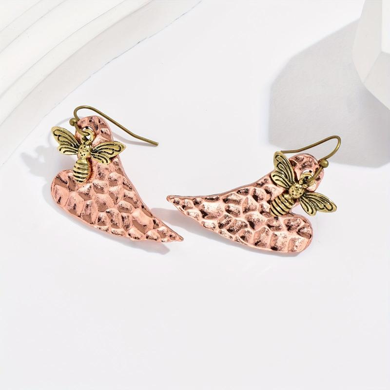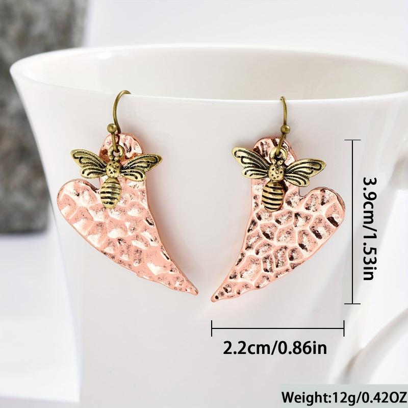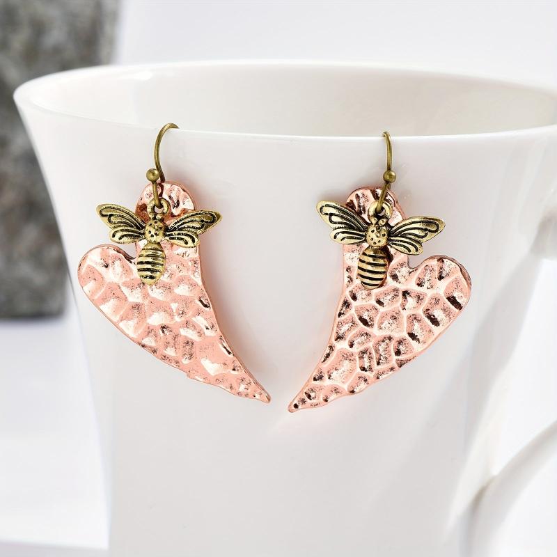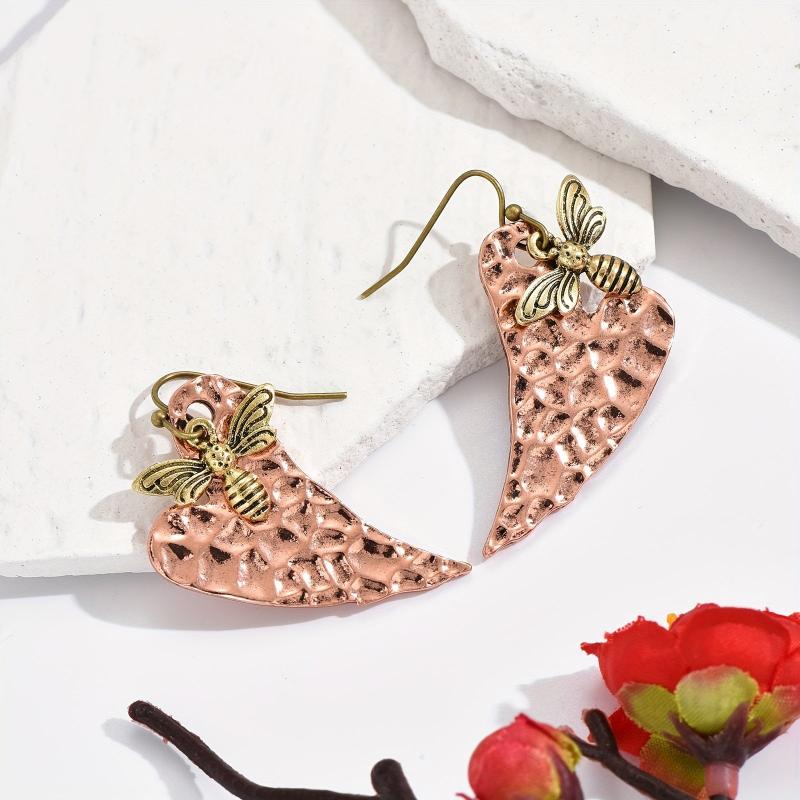 Embrace nature-inspired style with these vintage heart-shaped leaf and bee pendant earrings. The golden-tone bee accents add a touch of whimsy to the copper jewelry, perfect for men and women who love bohemian fashion.