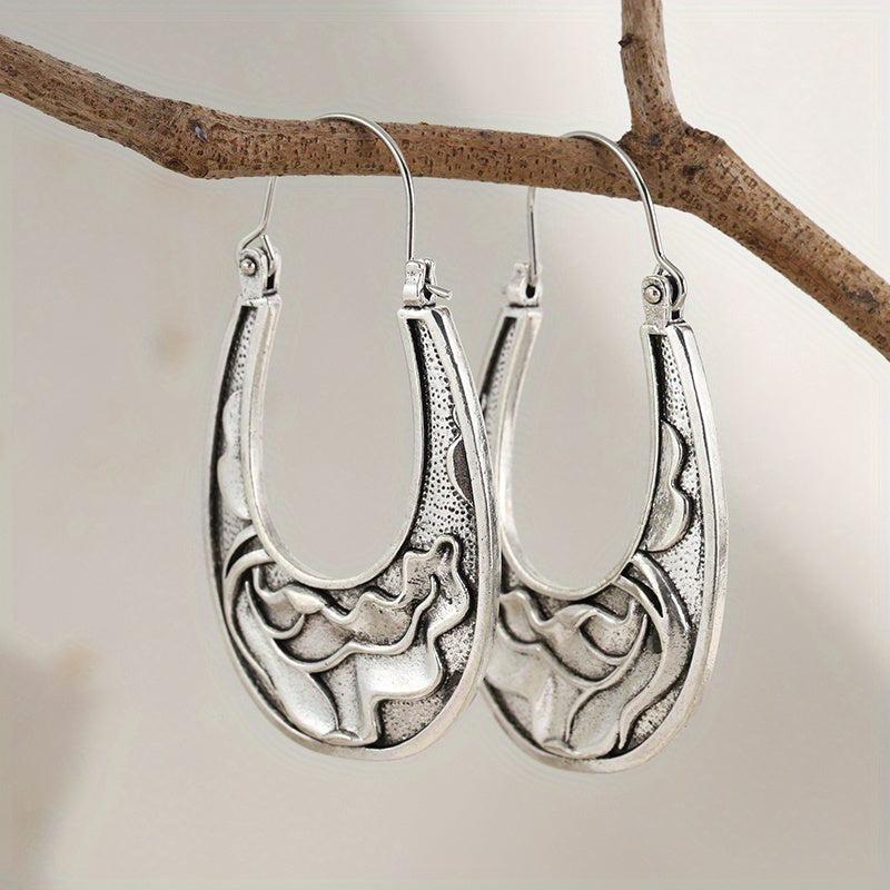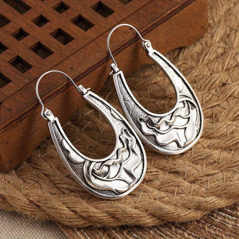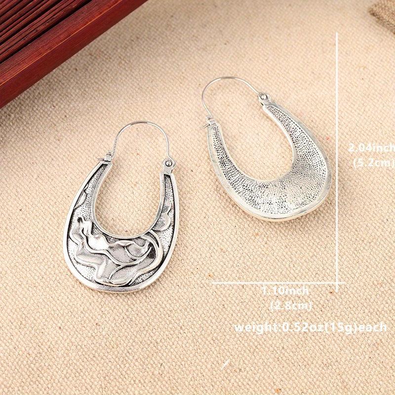 These Boho Water Ripple Hoop Earrings feature a retro carved design that adds a creative touch to your jewelry collection. Make a statement with these unique and stylish earrings.