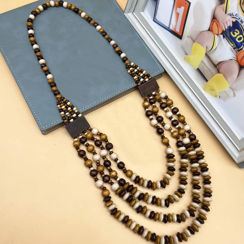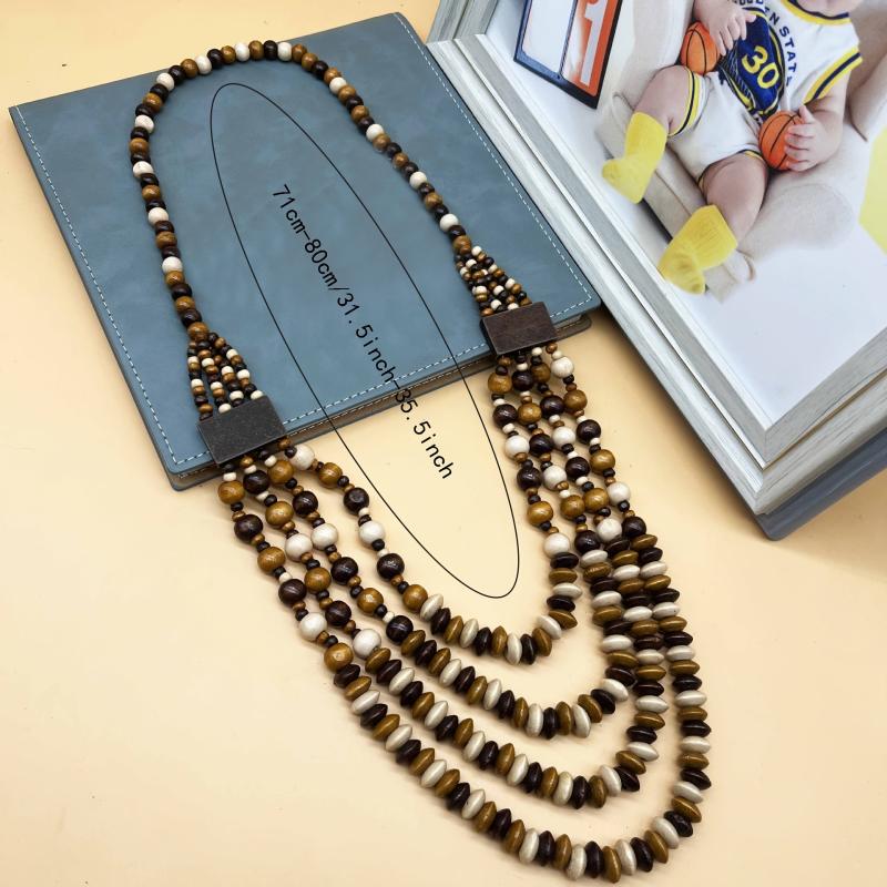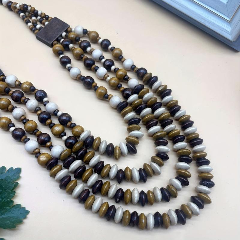 Add a touch of bohemian chic to your outfit with this multilayer wooden bead necklace. Featuring a varied bead pattern, this necklace is perfect for daily wear or as a thoughtful gift for a loved one.