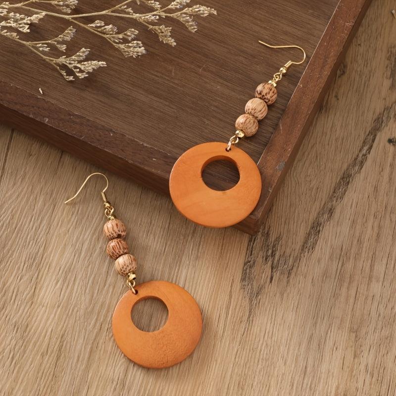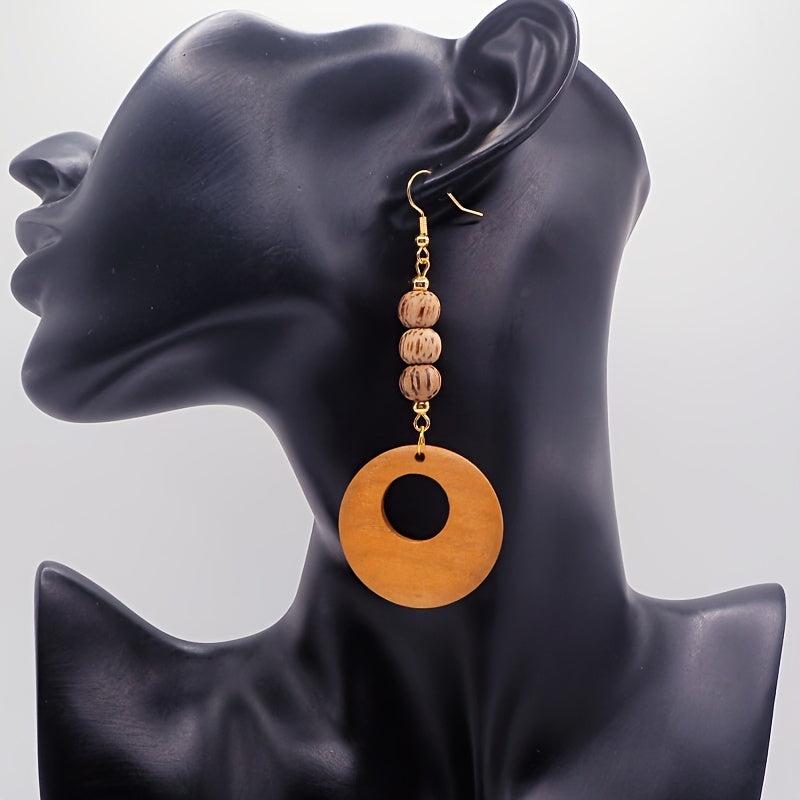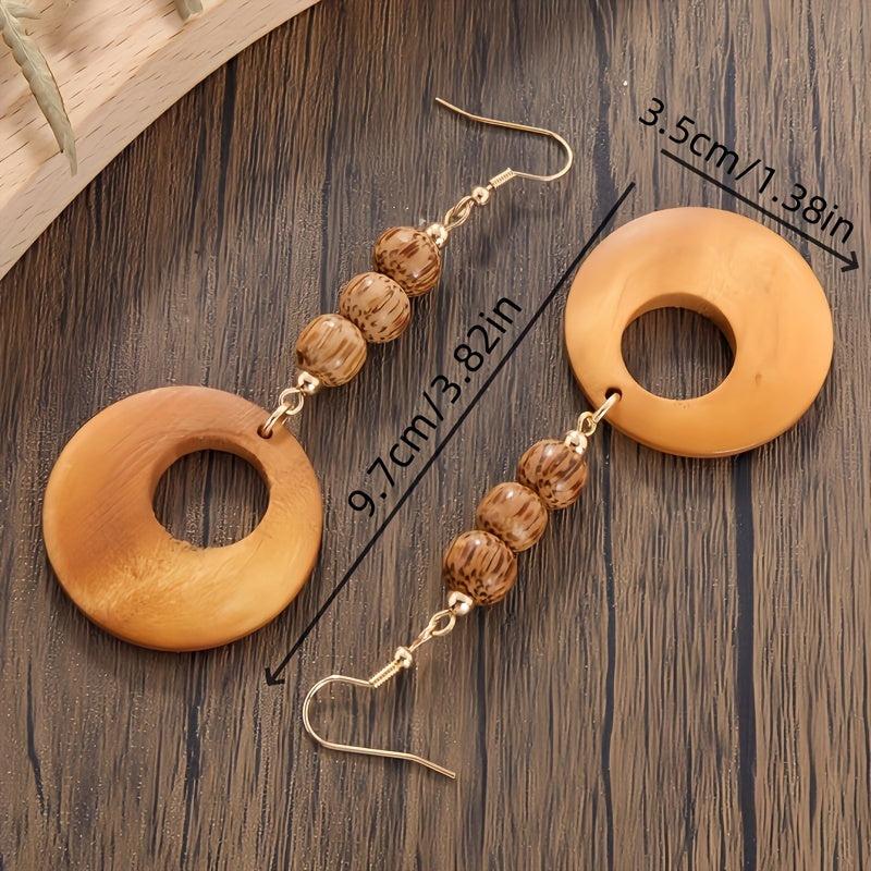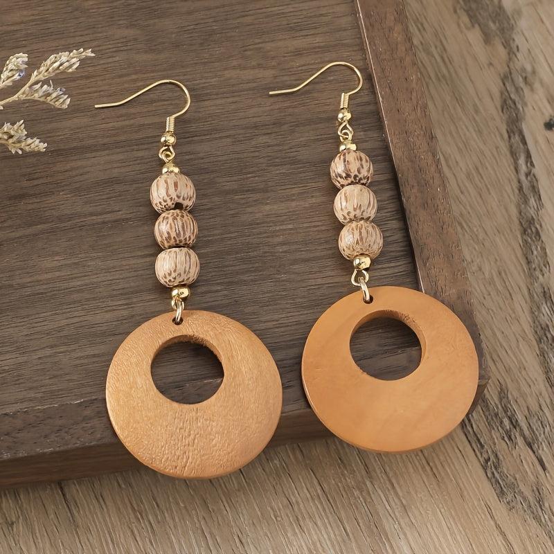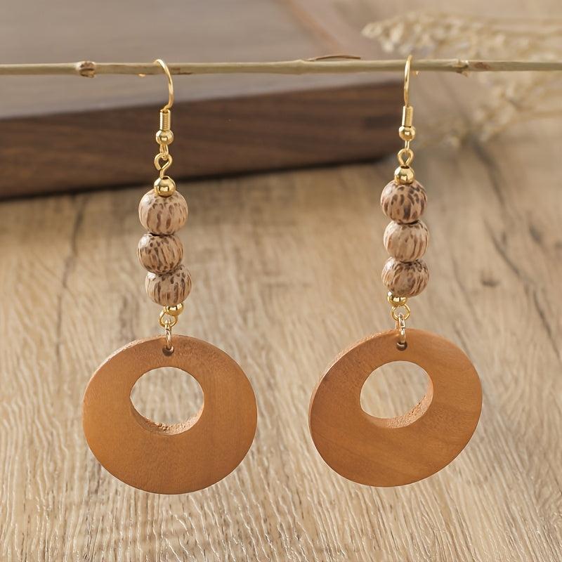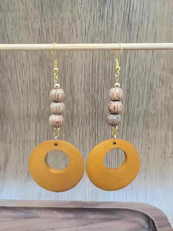 Add a touch of bohemian charm with these ethnic style wooden beads dangle earrings. Perfect for autumn and winter, these earrings are a great accessory to elevate your outfit.