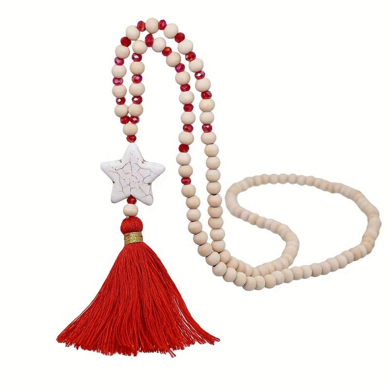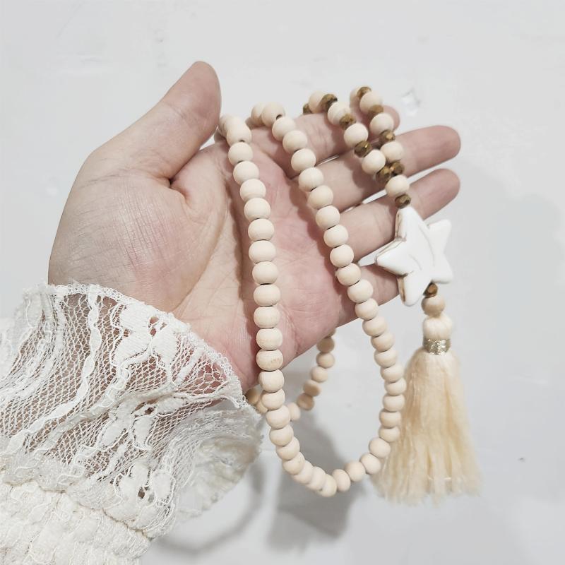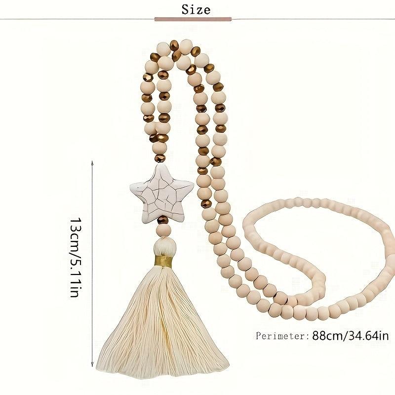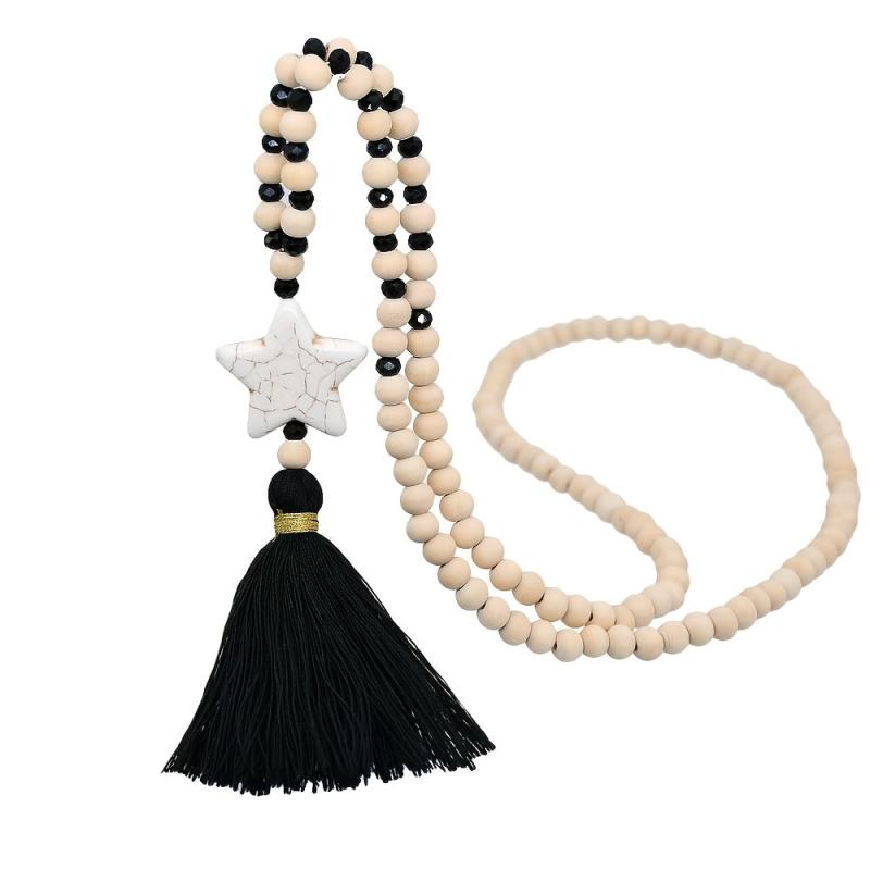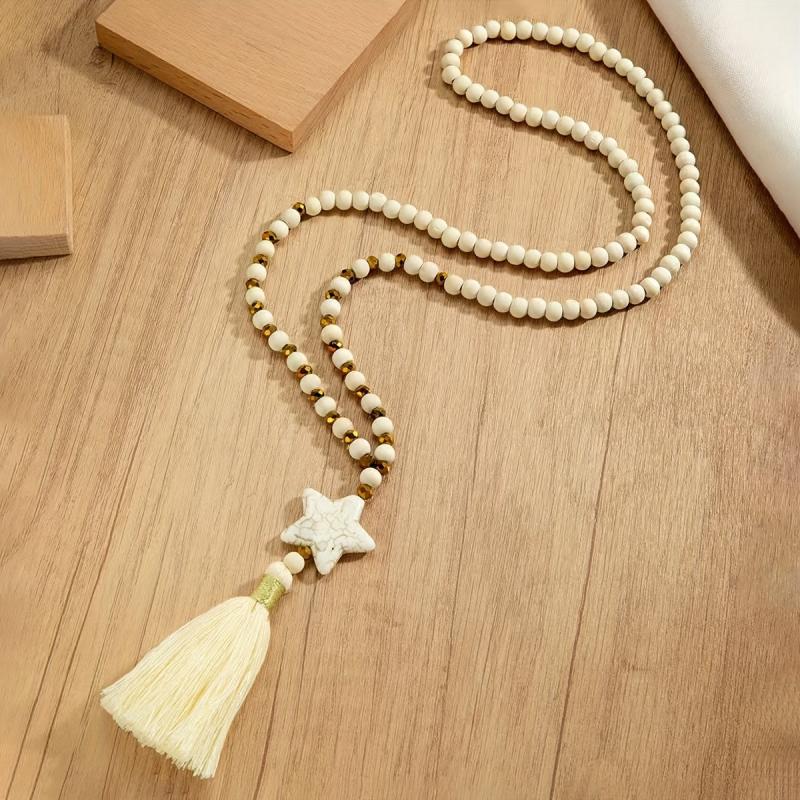This boho style wooden Y necklace with tassel pendant is perfect for your wife, mother, or daughter to wear daily. It adds a touch of unique charm to any outfit.