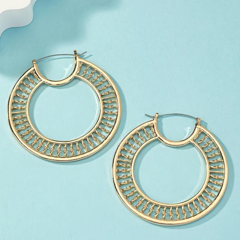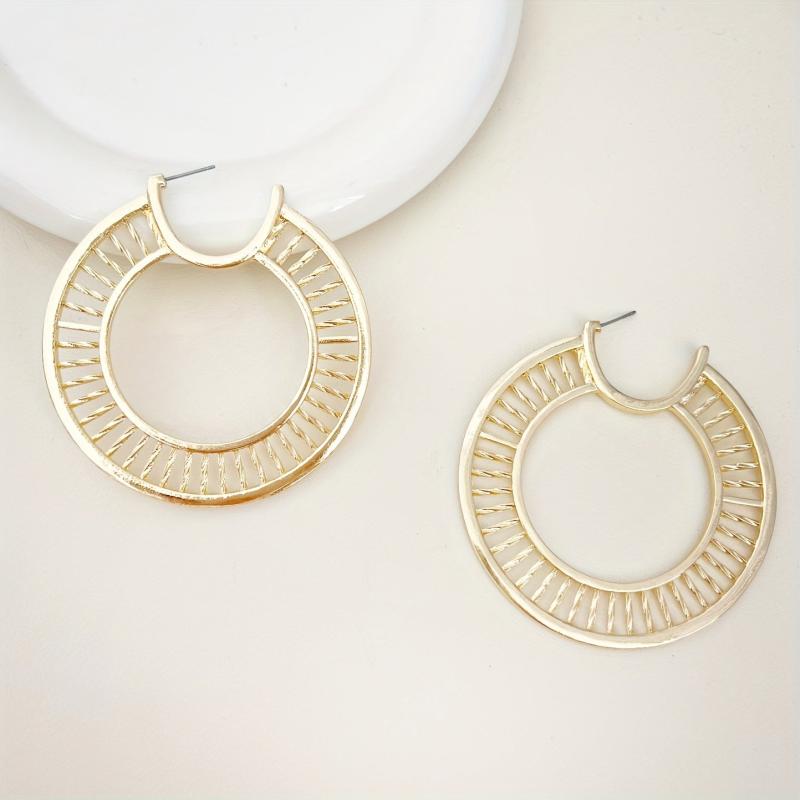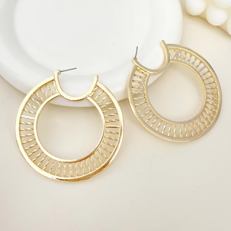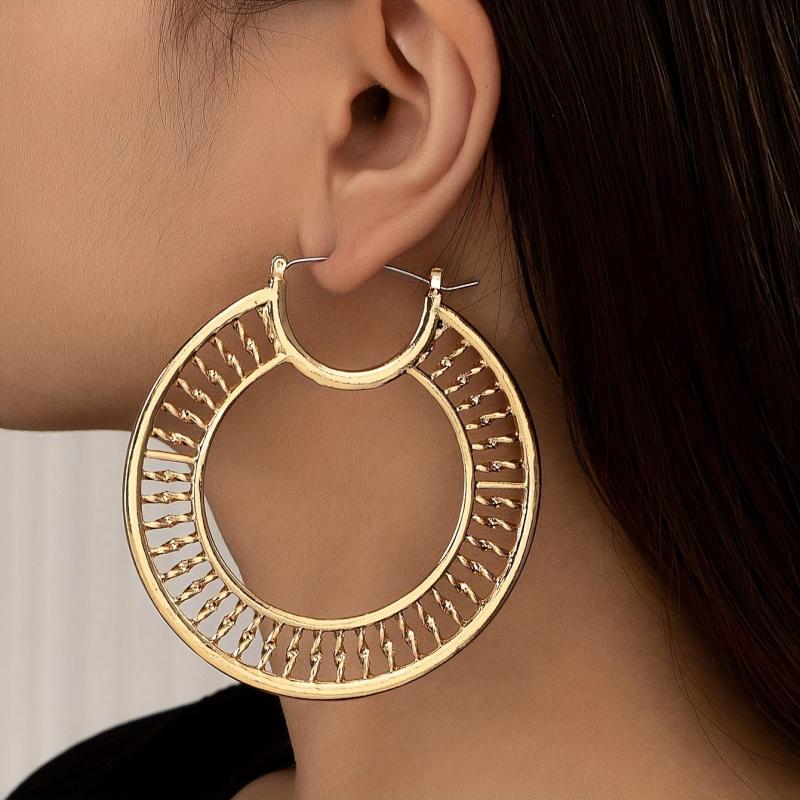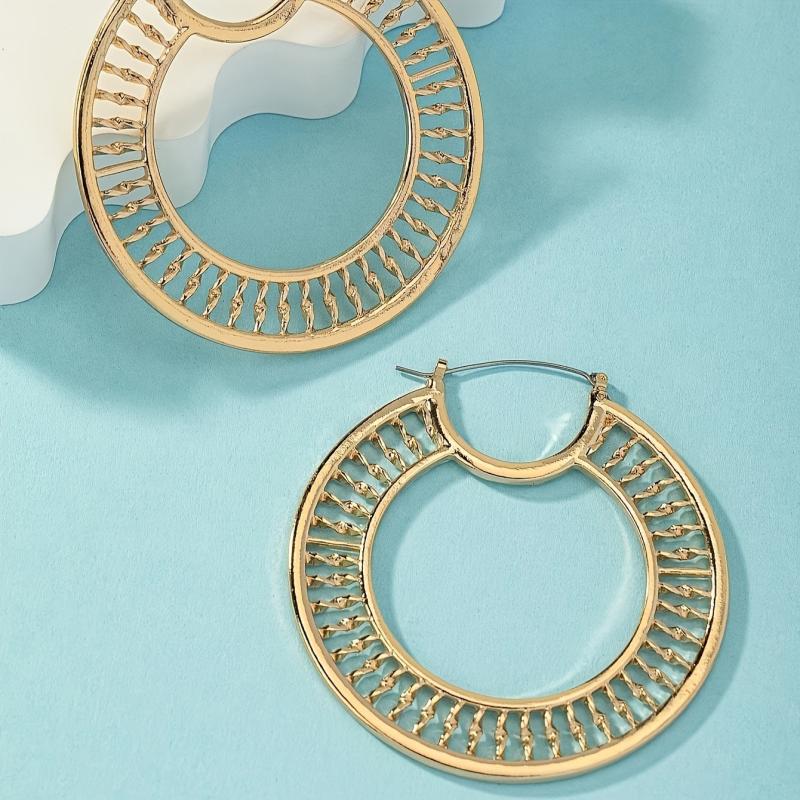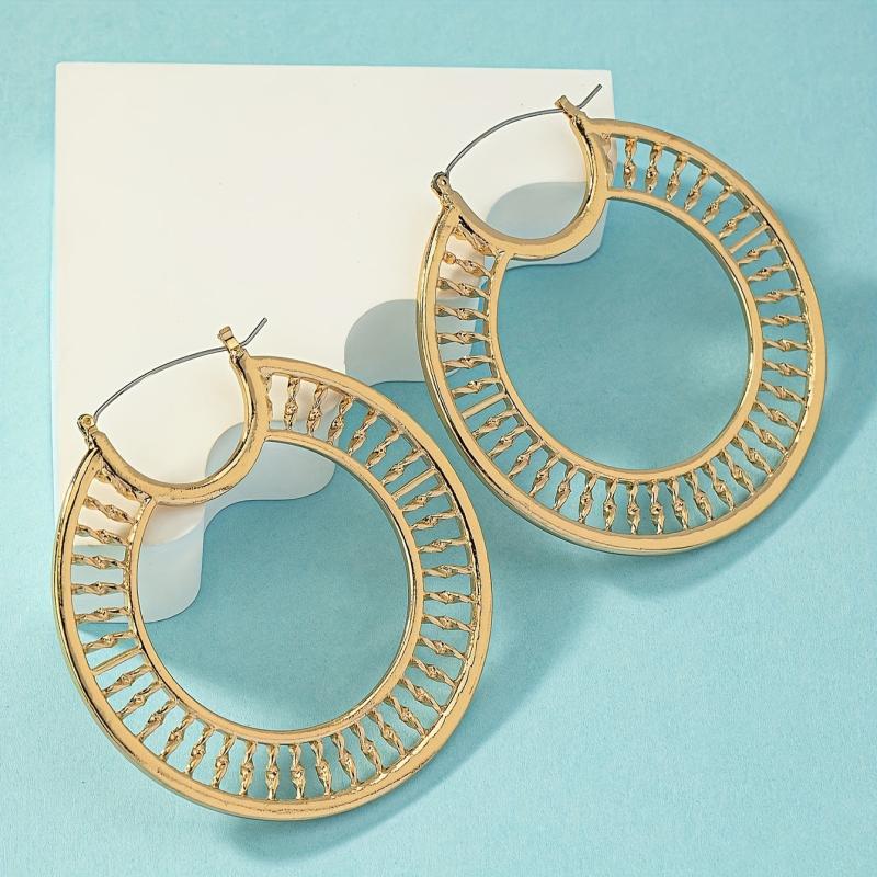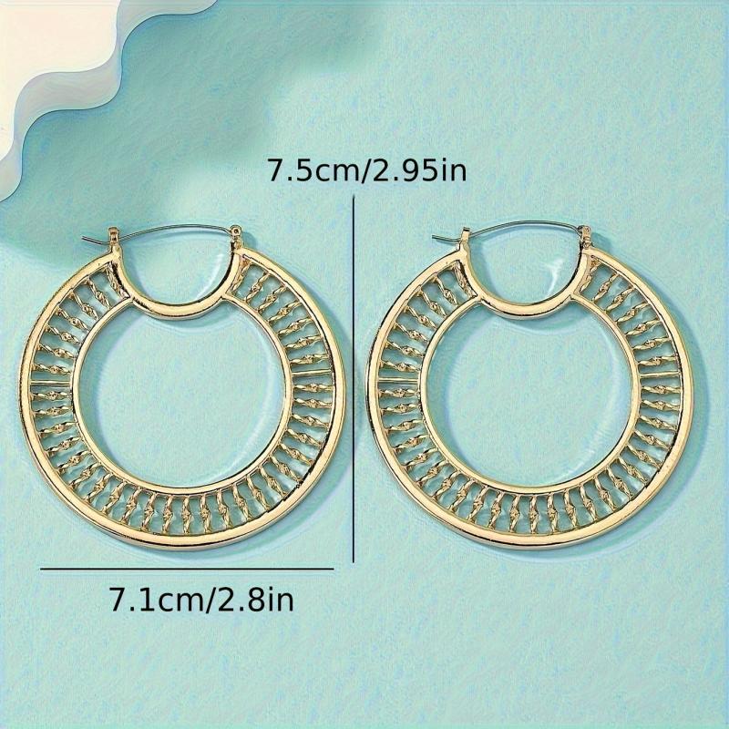 These statement earrings feature a hollow design in a round circle shape, perfect for adding a boho touch to your outfit. Made of zinc alloy, these earrings are suitable for daily wear as well as special occasions.