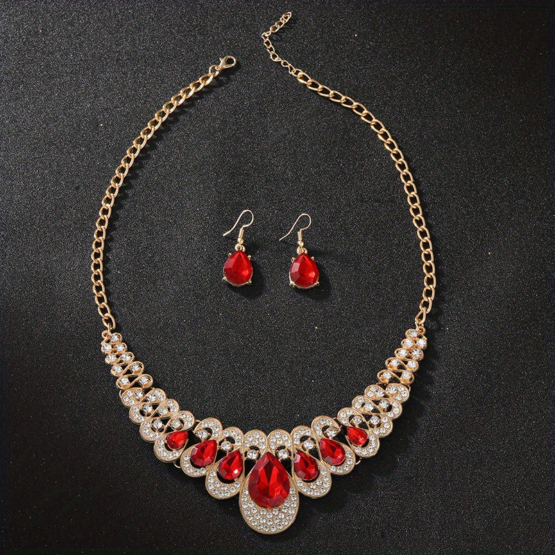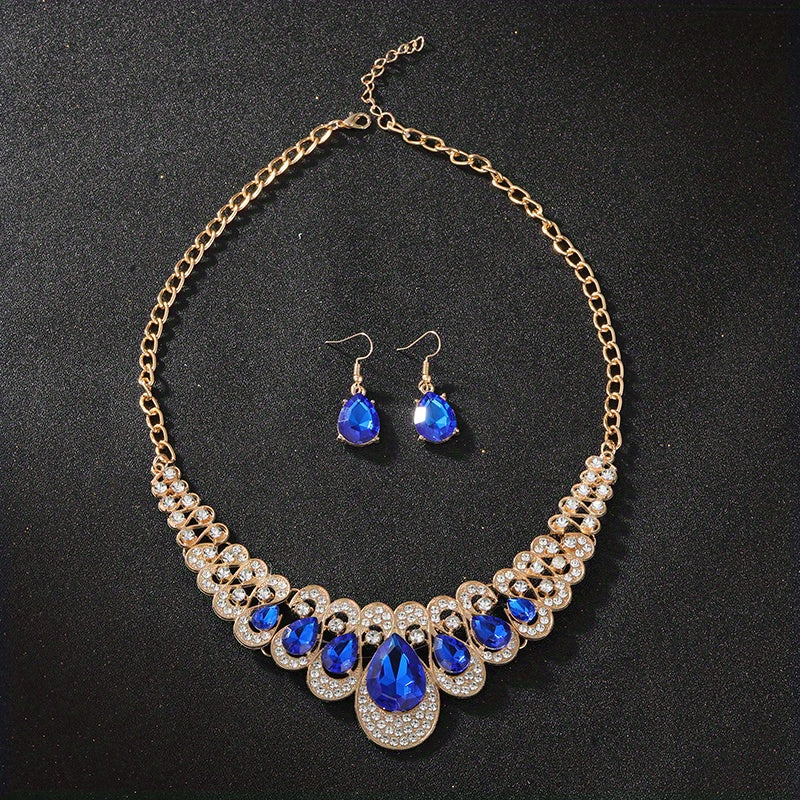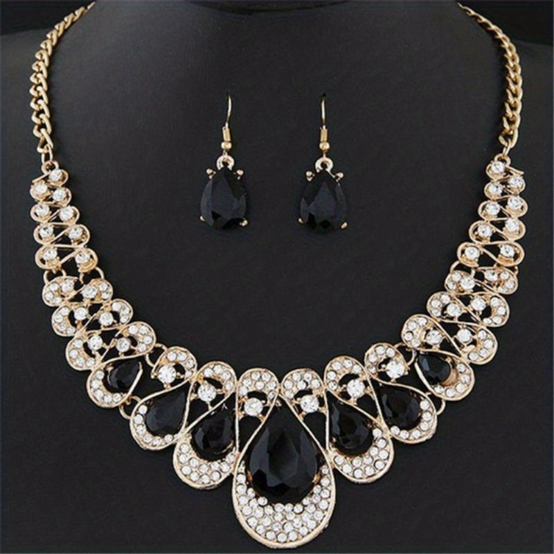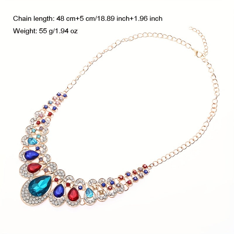 Enhance your boho chic look with this colorful zircon jewelry set. The choker necklace and drop earrings feature vibrant inlays that add a pop of color to your outfit.