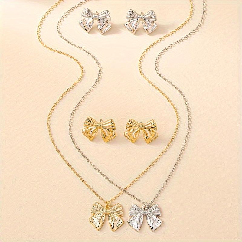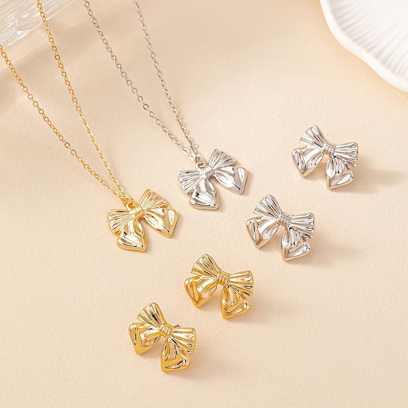 Elegant and charming jewelry set with a bowknot design, perfect for adding a touch of glamour to your outfit. Makes a great gift for any occasion.