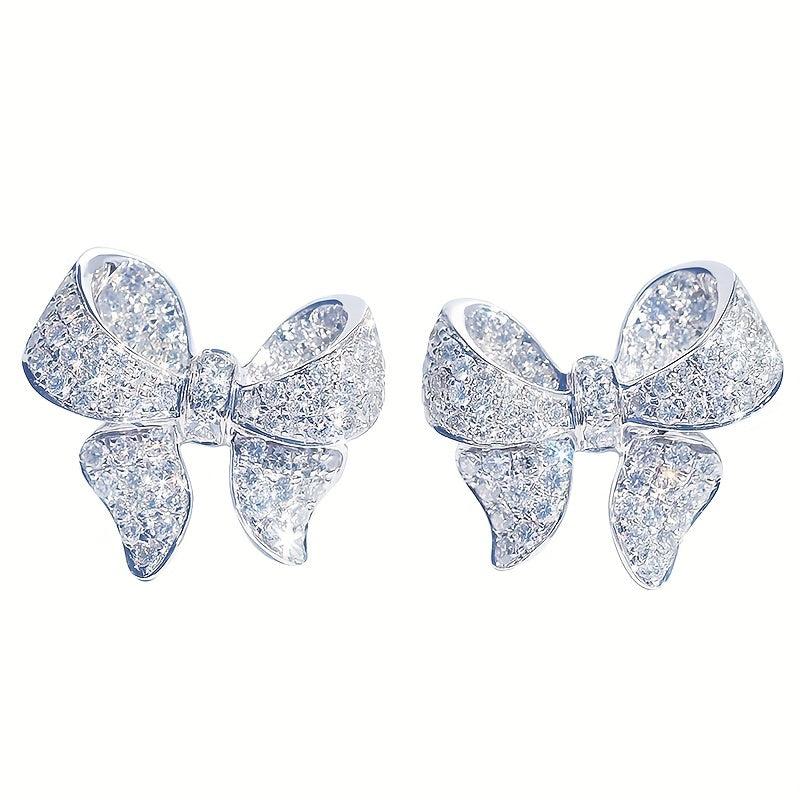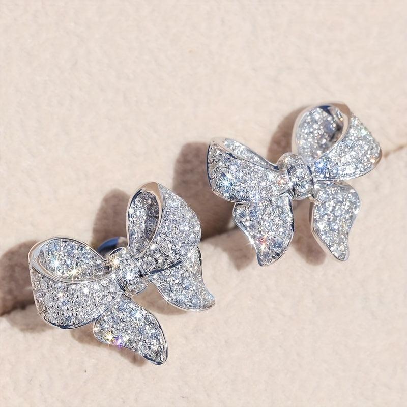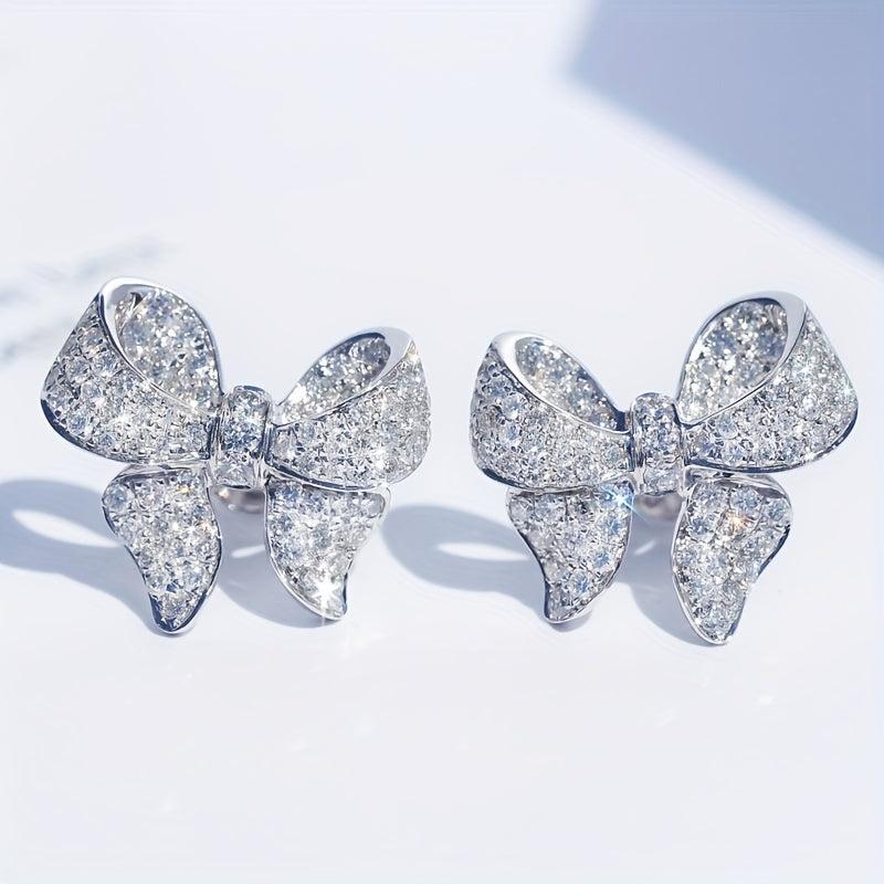 These elegant bowknot stud earrings are made of synthetic zirconia in copper with nickel plating, perfect for women to wear at weddings and banquets. The April birthstone adds a touch of sparkle to any outfit.