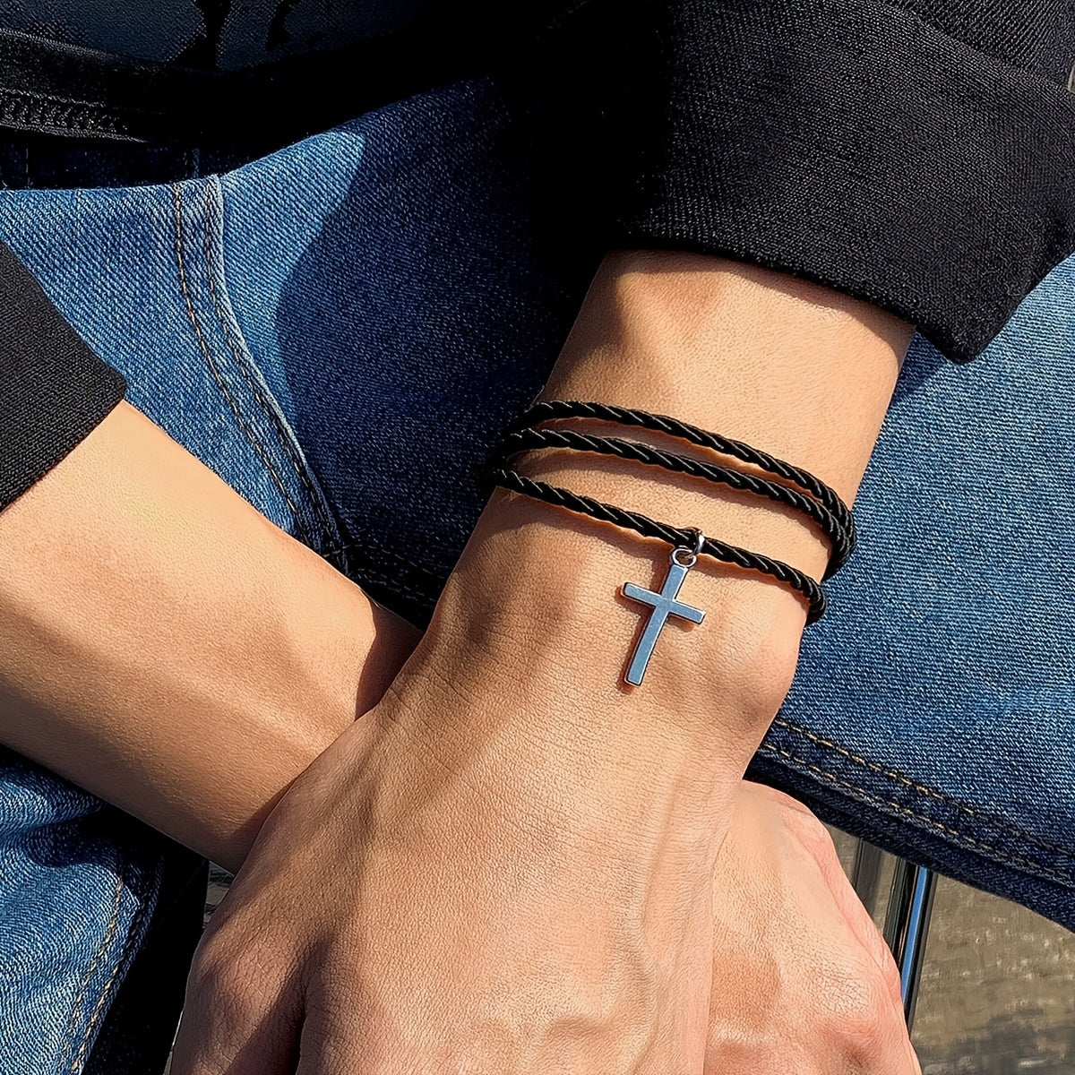 Embrace a blend of tradition and style with this multilayer braided cross bracelet for men. Its ethnic design adds a unique touch to your look.
