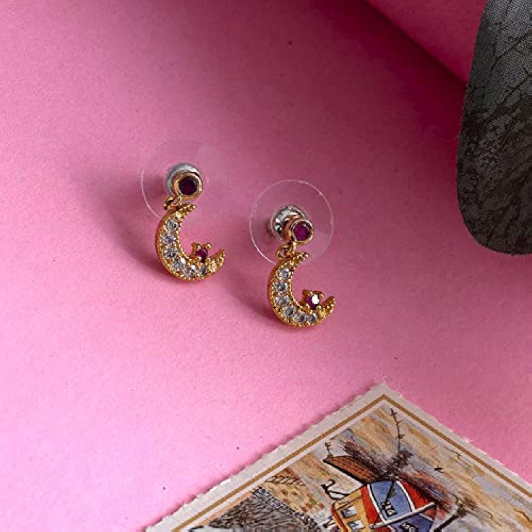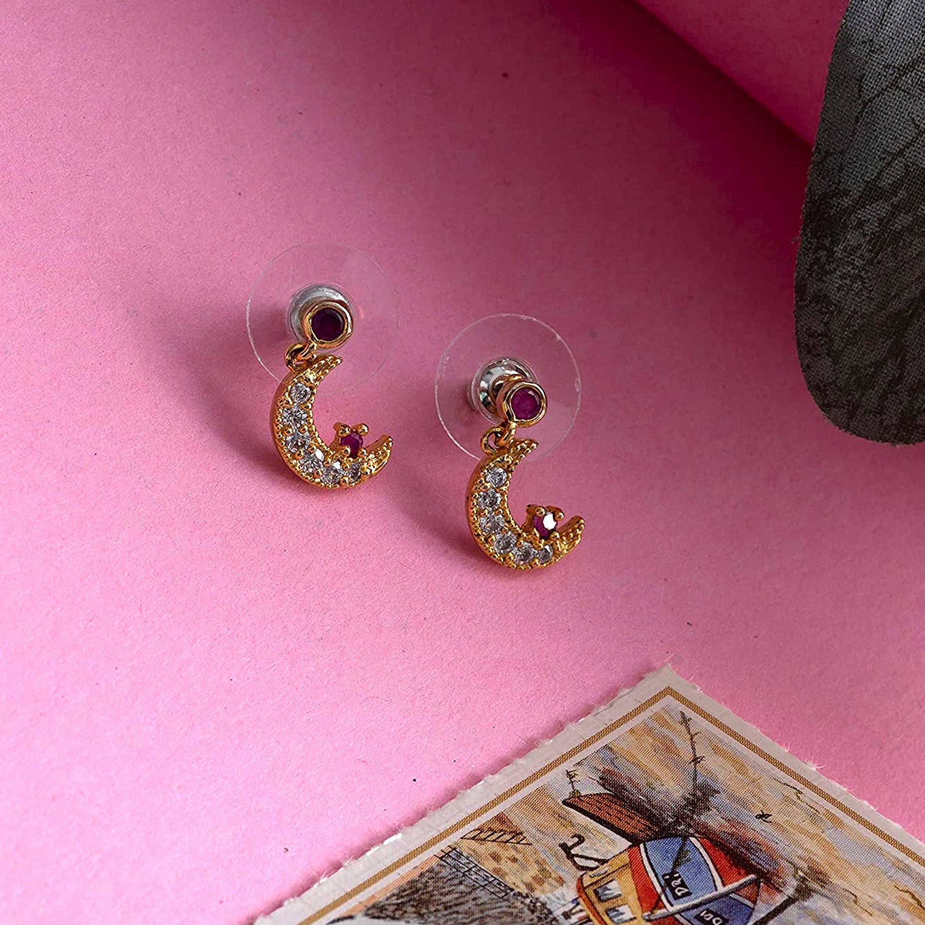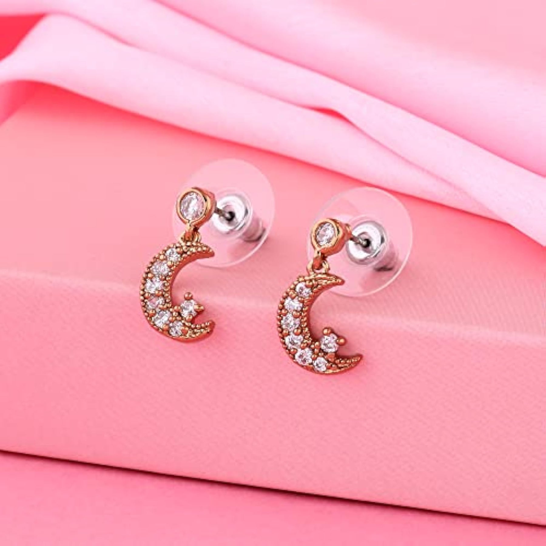 Stylish drop earrings with American diamond cresent star design