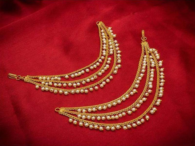 Get adorned in style with this elegant brass and copper ear chain featuring 3 layers, perfect for bridal and wedding occasions.