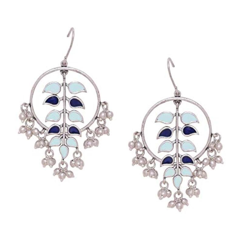 Add a touch of elegance to your look with these brass hoop style dangler earrings featuring beautiful beads. Perfect for any occasion.