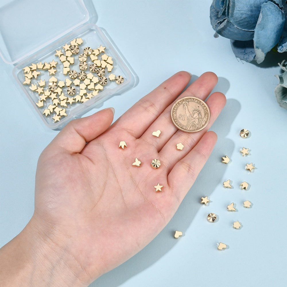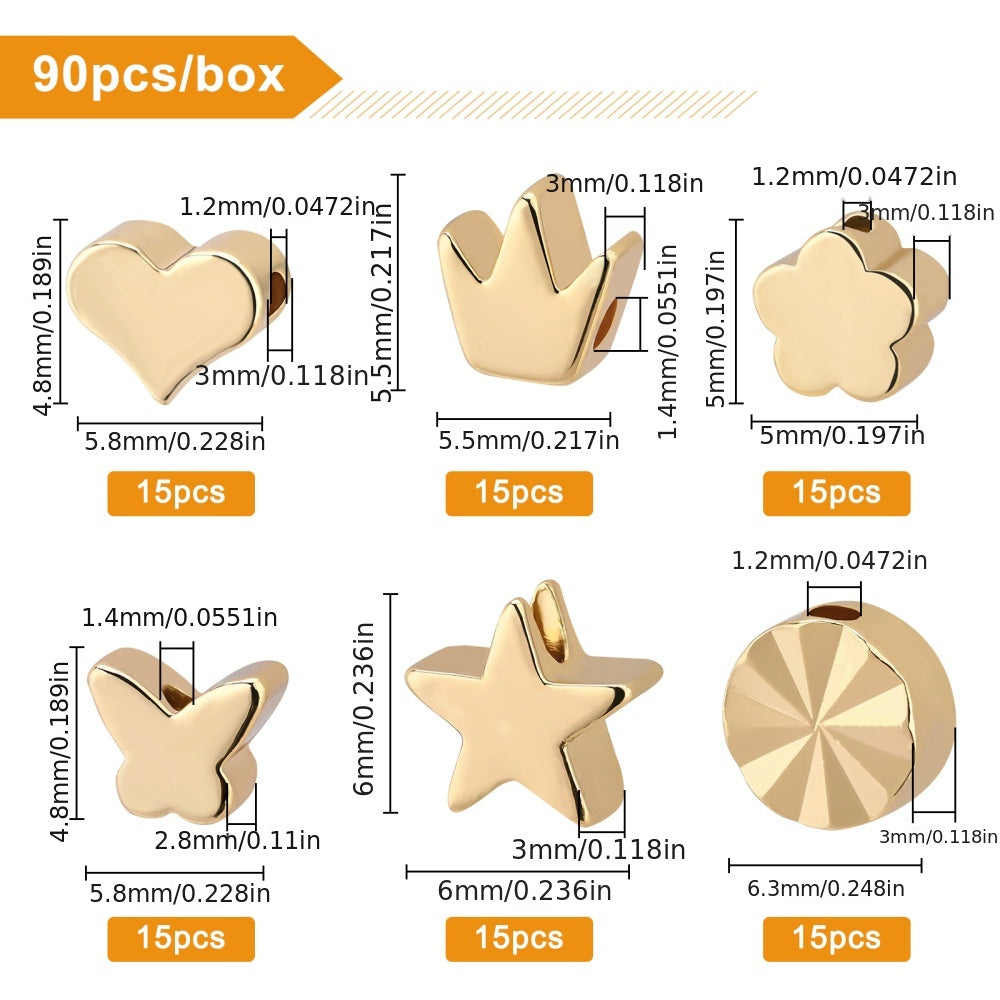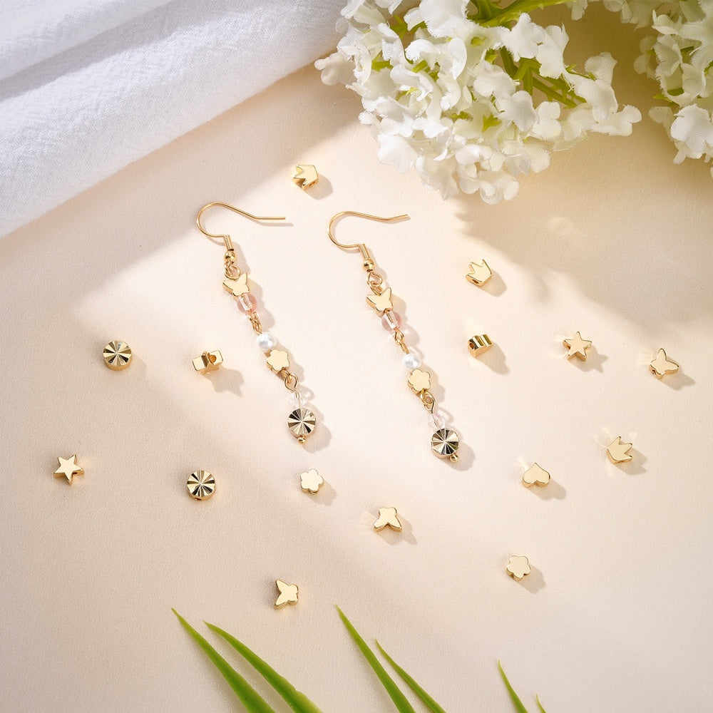 Create beautiful handmade jewelry with this set of golden brass spacer beads in various shapes. Perfect for earrings, bracelets, necklaces, and other accessories.