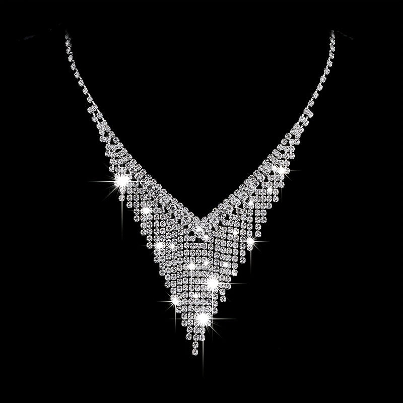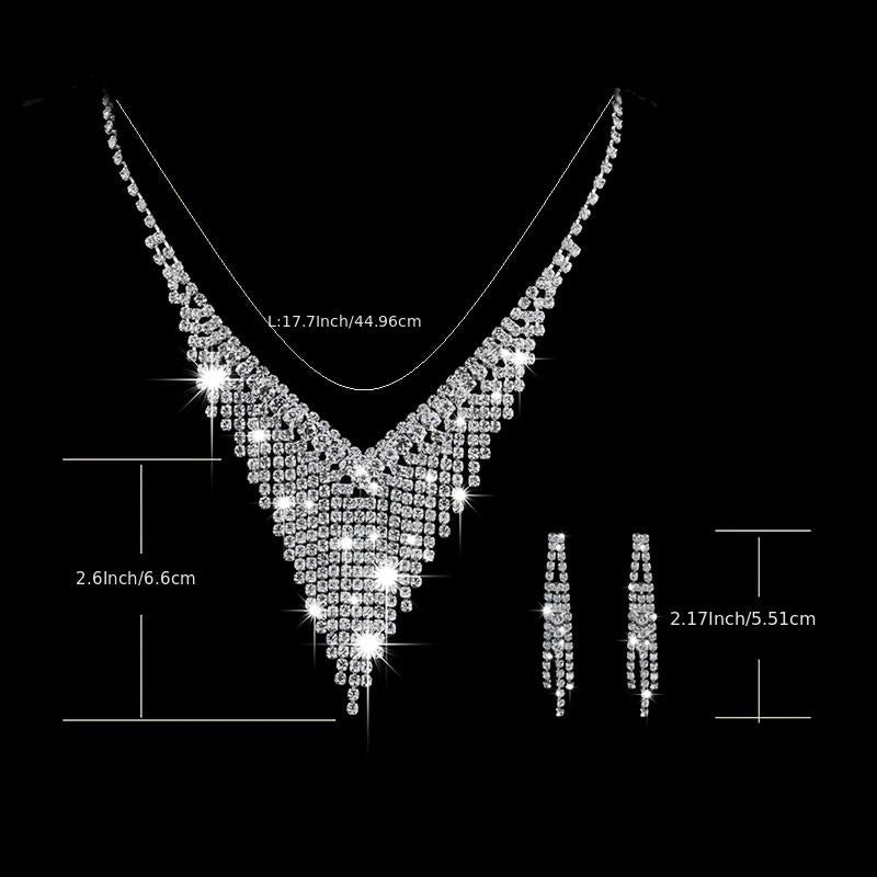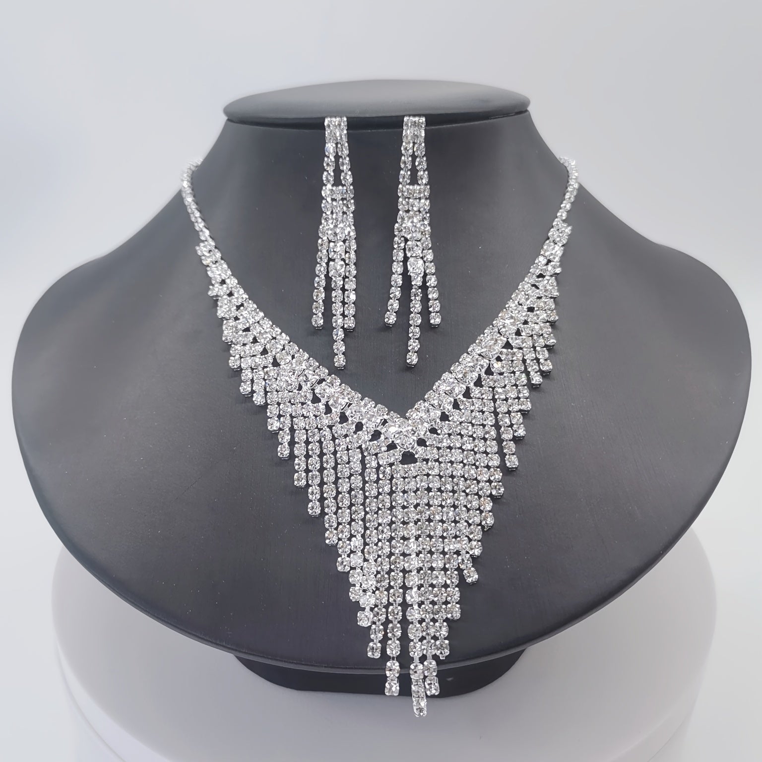 Gorgeous silver-plated jewelry set for brides, featuring a hollow tassel design with synthetic diamonds. Perfect for weddings, engagements, and parties.