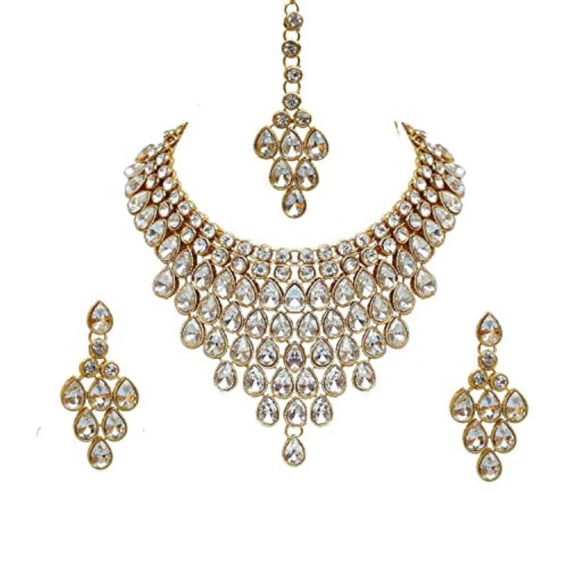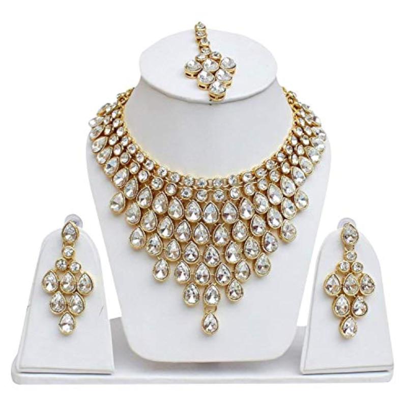 Elegant and sophisticated bridal jewelry set featuring a stunning necklace and matching earrings. Perfect for weddings and special occasions.