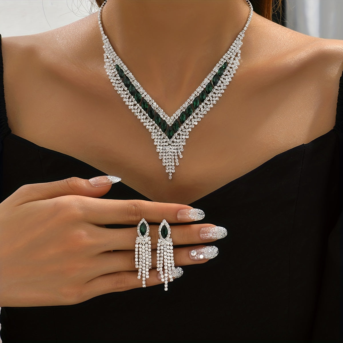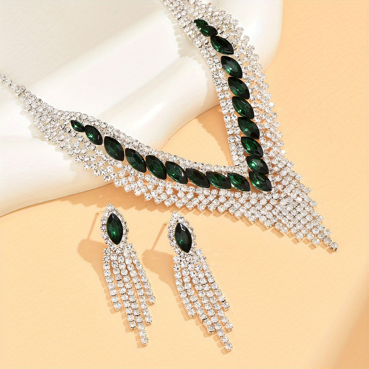 Elegant bridal zircon necklace set featuring a stunning pendant and matching earrings. Perfect for weddings and special occasions.
