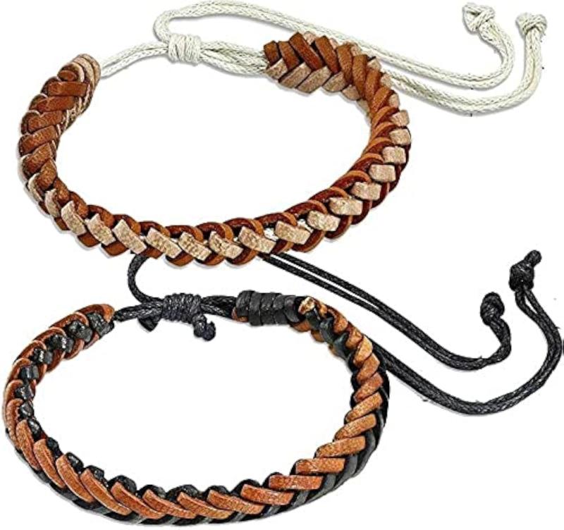 This stylish brown leather braided bracelet is perfect for couples. It features an adjustable design for a comfortable fit.