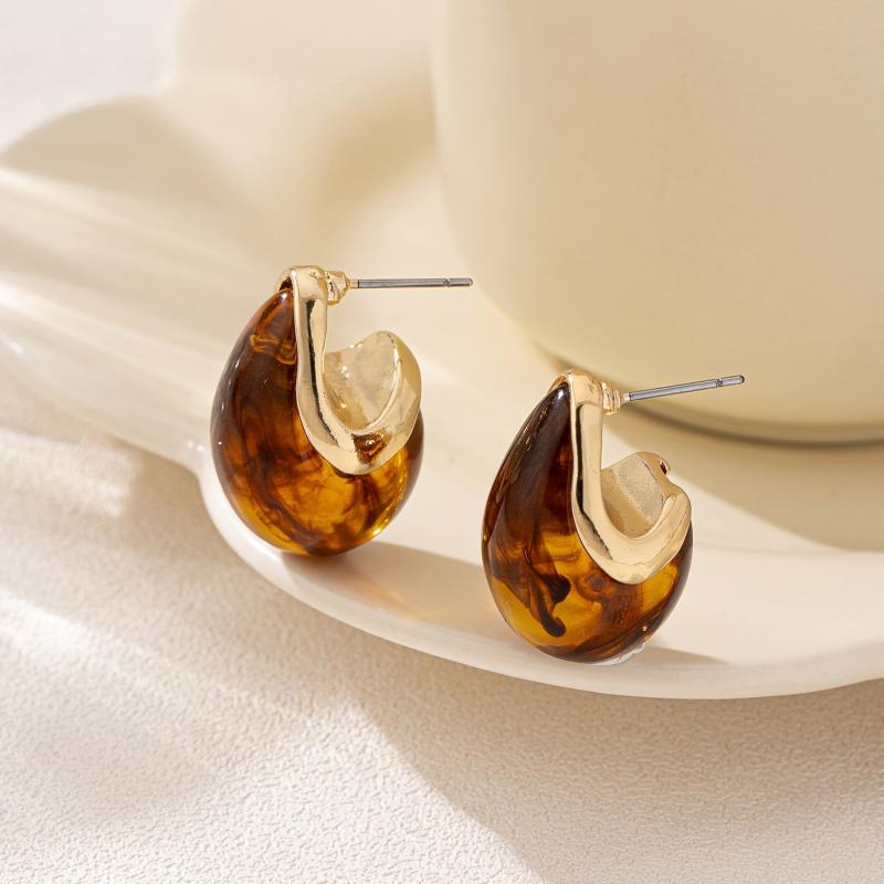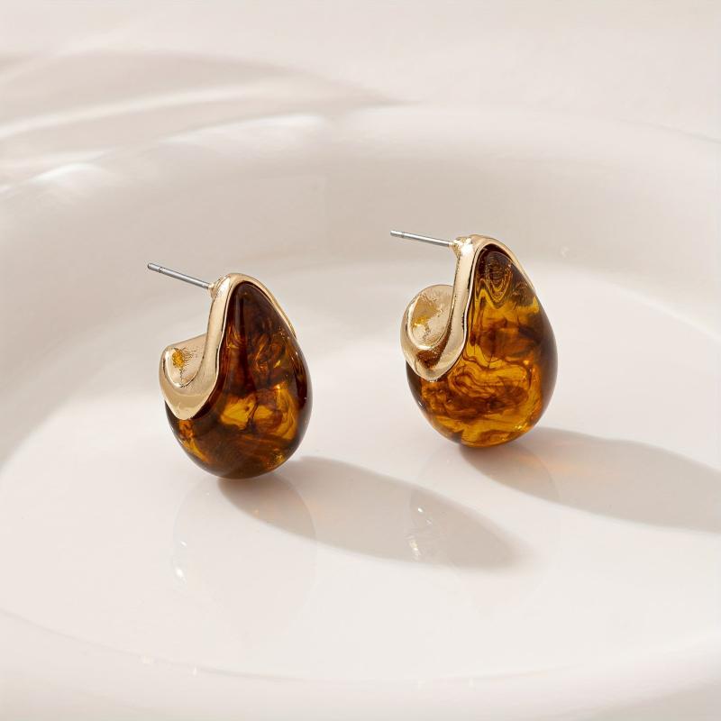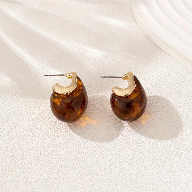 These vintage inspired earrings are perfect for fall & winter parties, daily wear, and formal occasions. The brown marbled resin with golden accents adds a touch of elegance to any outfit.