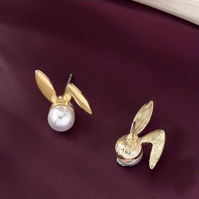 Bunny Faux Pearl Stud Earrings Retro Style Rabbit Versatile