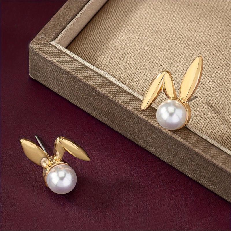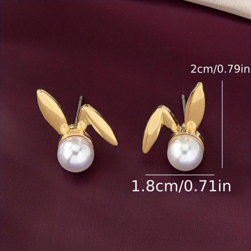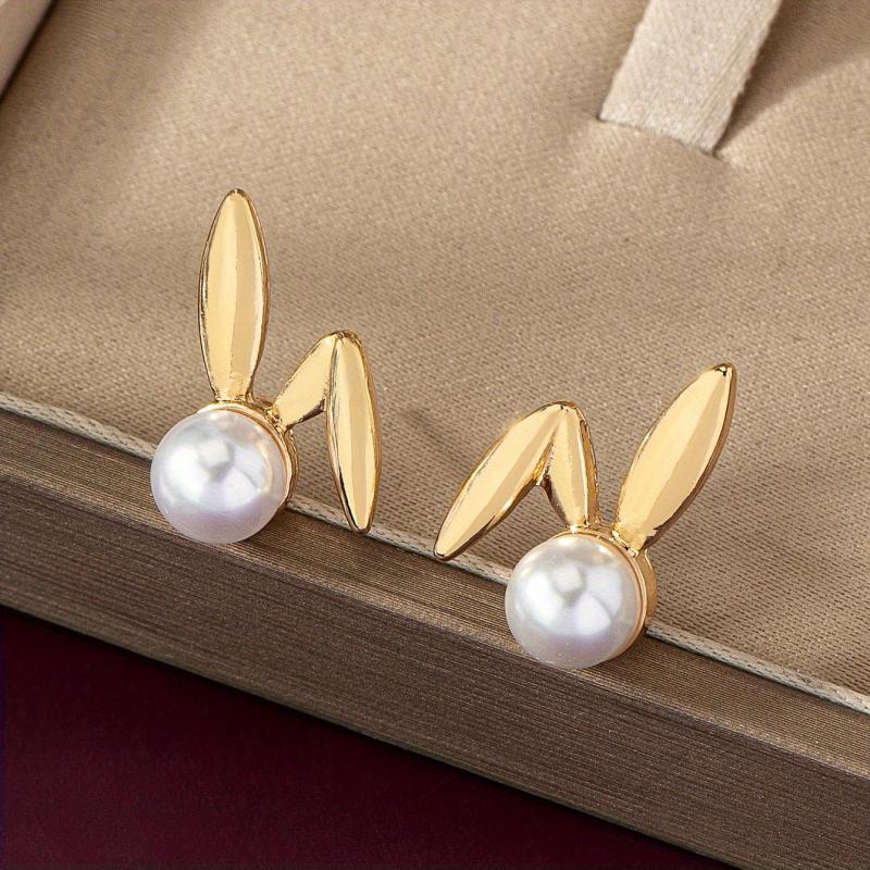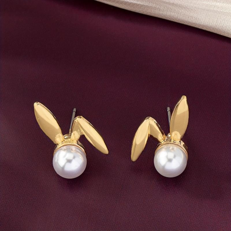 These charming faux pearl stud earrings have a retro bunny design that is versatile and modern, perfect for any occasion or outfit.