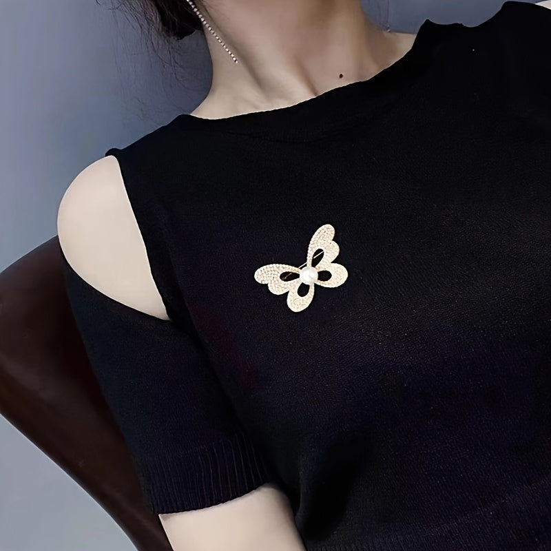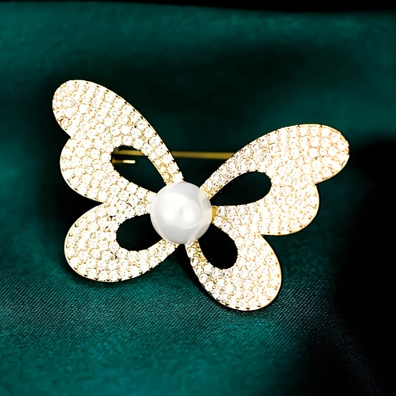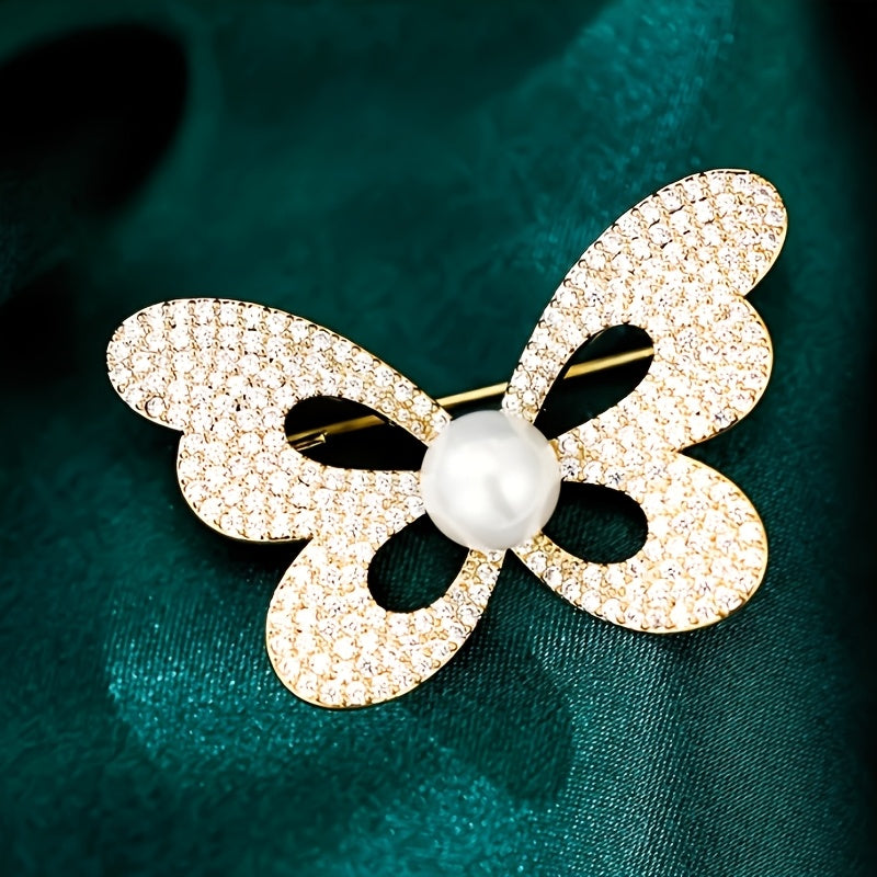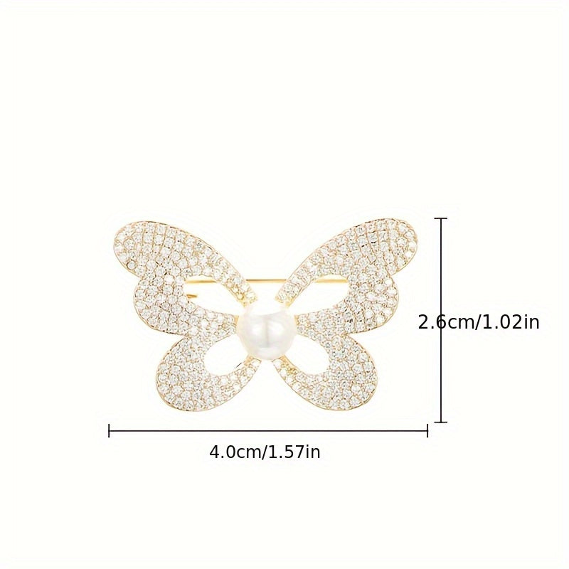 Elevate your style with this stunning butterfly brooch embellished with rhinestones and pearls. Ideal for adding elegance to women's suits and accessories.