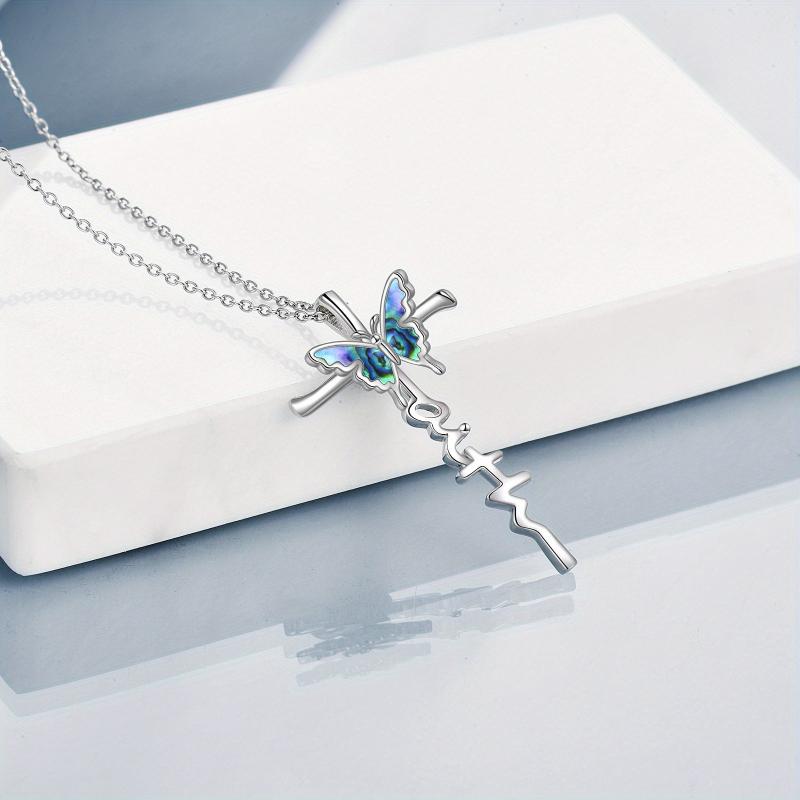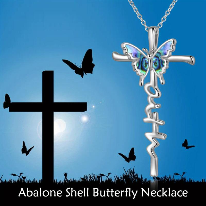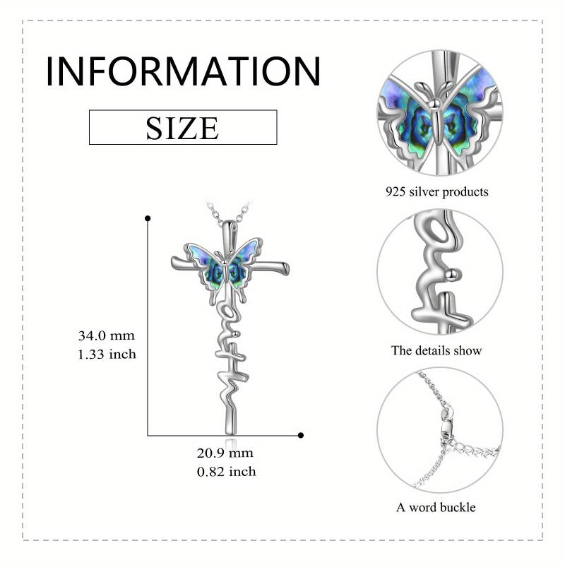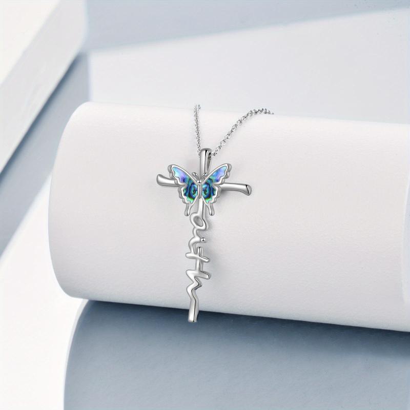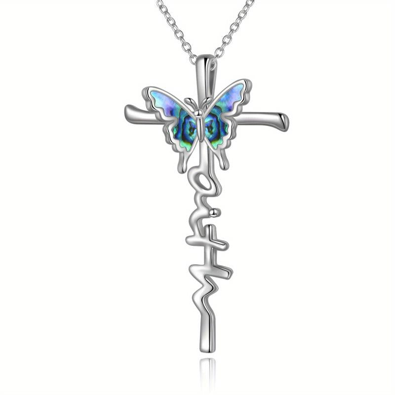 This sterling silver necklace features a beautiful butterfly cross pendant, making it a stylish and meaningful accessory for women.