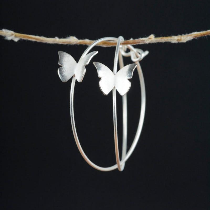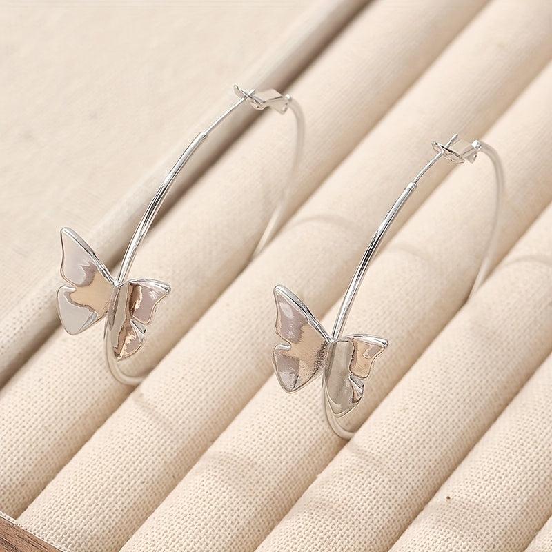 These beautiful butterfly hoop earrings are the perfect accessory for any woman. Made with high-quality materials, these earrings are stylish and elegant.