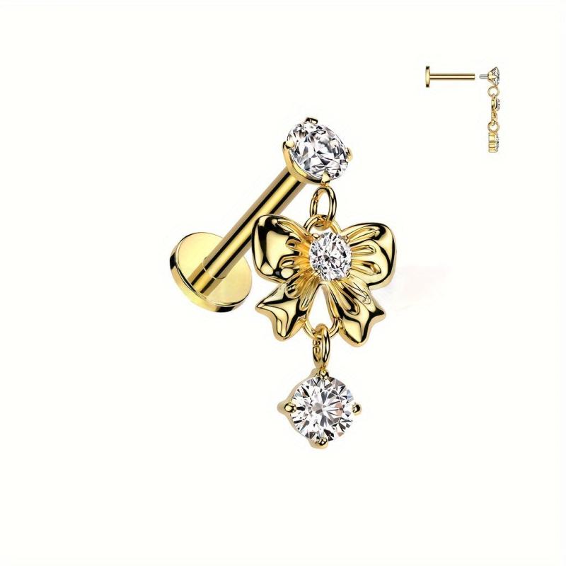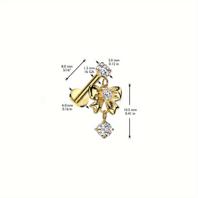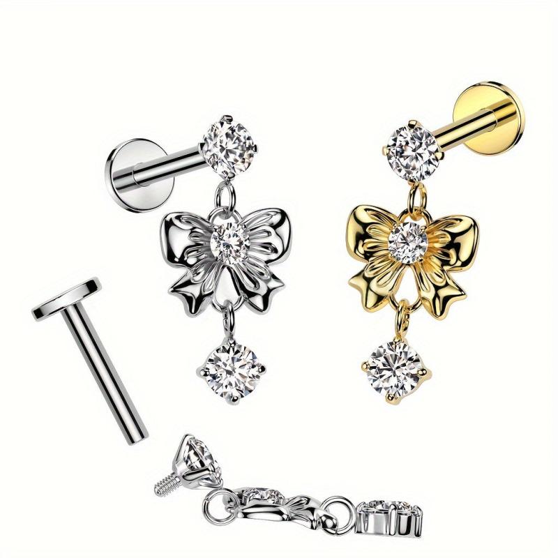 Add a touch of elegance with these butterfly knot pendant earrings featuring synthetic zirconia. Made with durable copper base and 316 stainless steel post, they are perfect for body piercings.