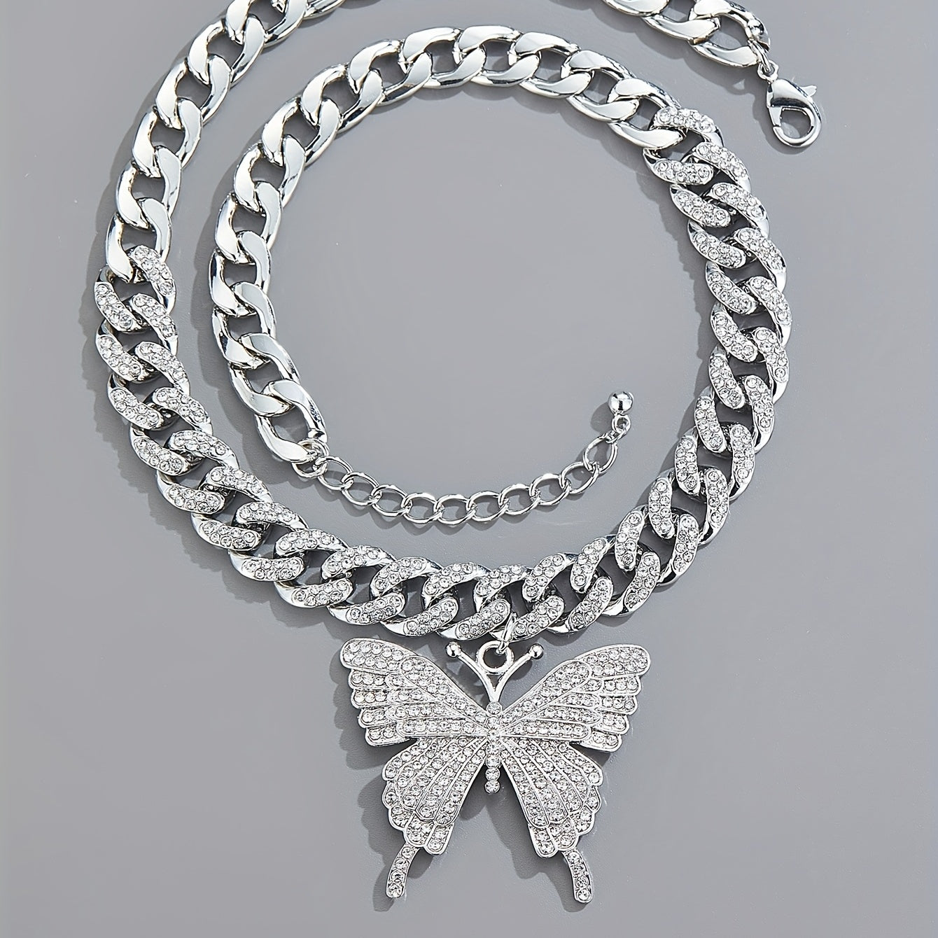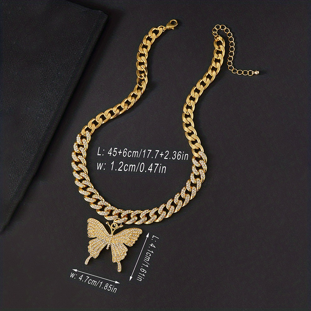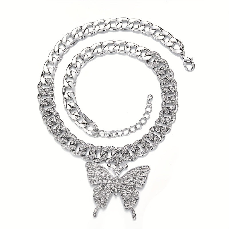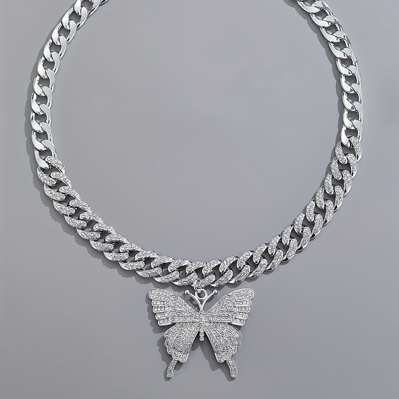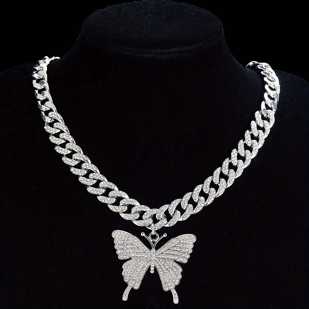 Elegant butterfly necklace with full diamond detailing on a Cuban chain for a luxurious look.