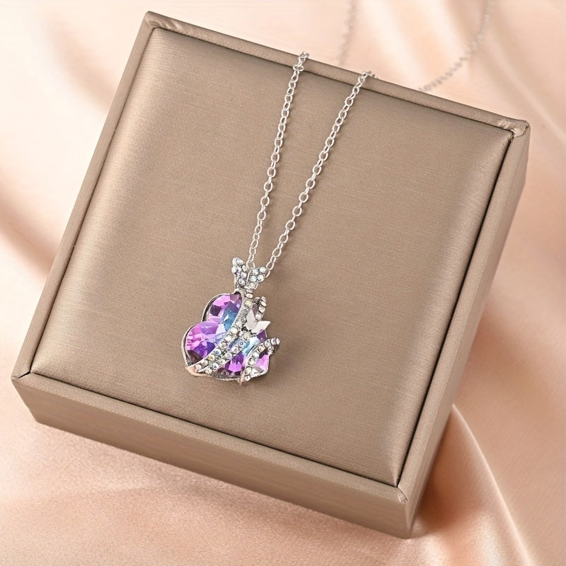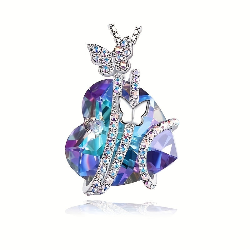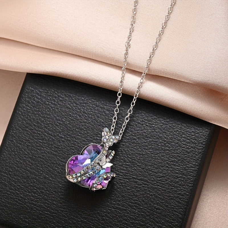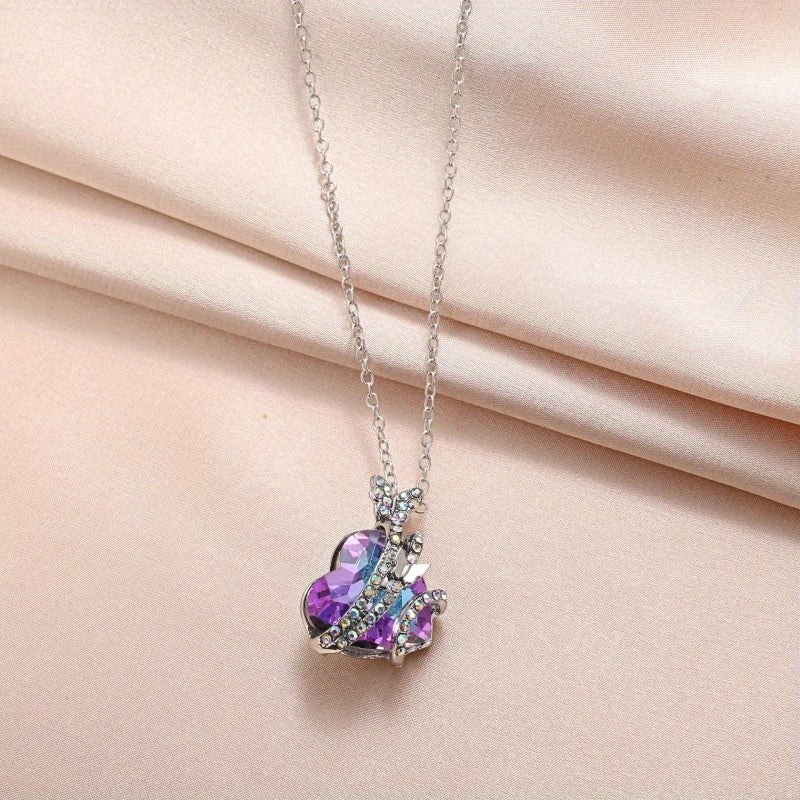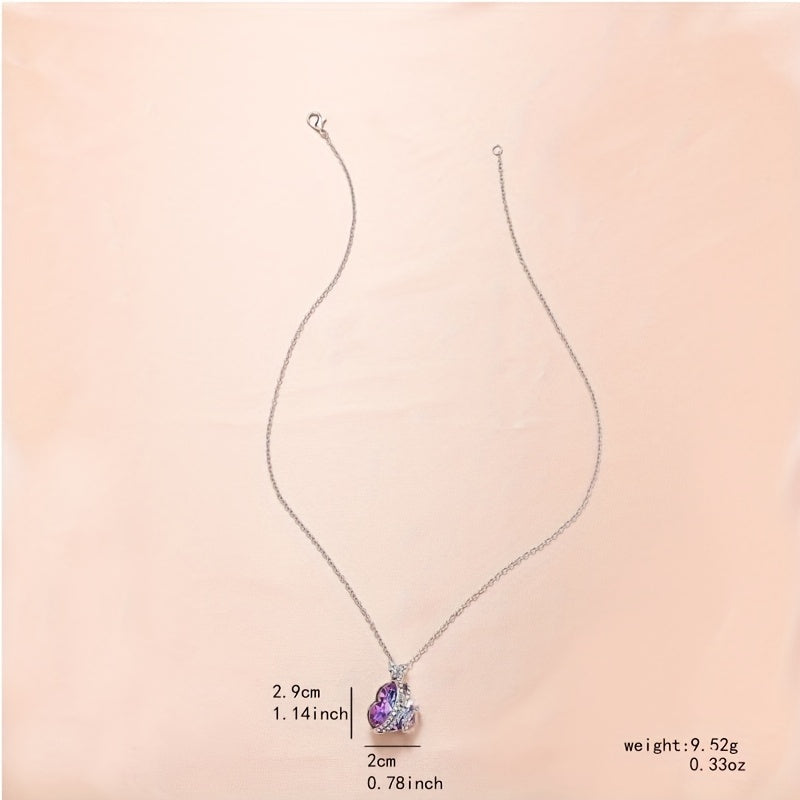 Add a touch of elegance with this delicate butterfly necklace featuring a peach heart-shaped crystal pendant. Perfect for a stylish and trendy look.