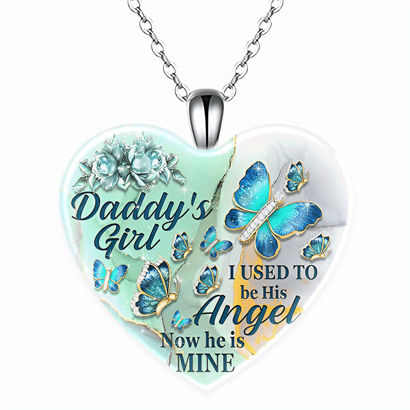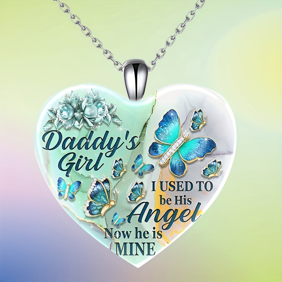 This heart-shaped pendant necklace features a creative butterfly pattern, making it a stylish accessory for holiday parties or as a birthday gift. Perfect for men.