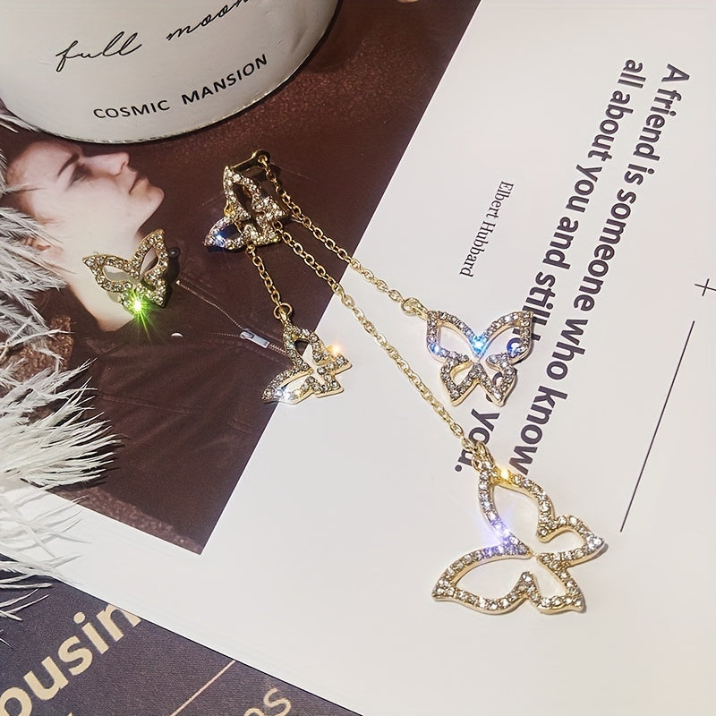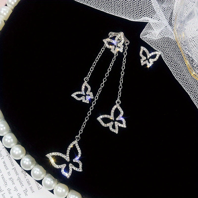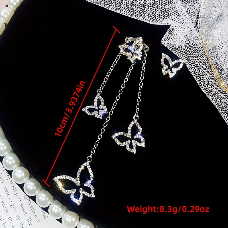 Surprise your friends with these stunning butterfly rhinestone earrings. The perfect accessory for any outfit.