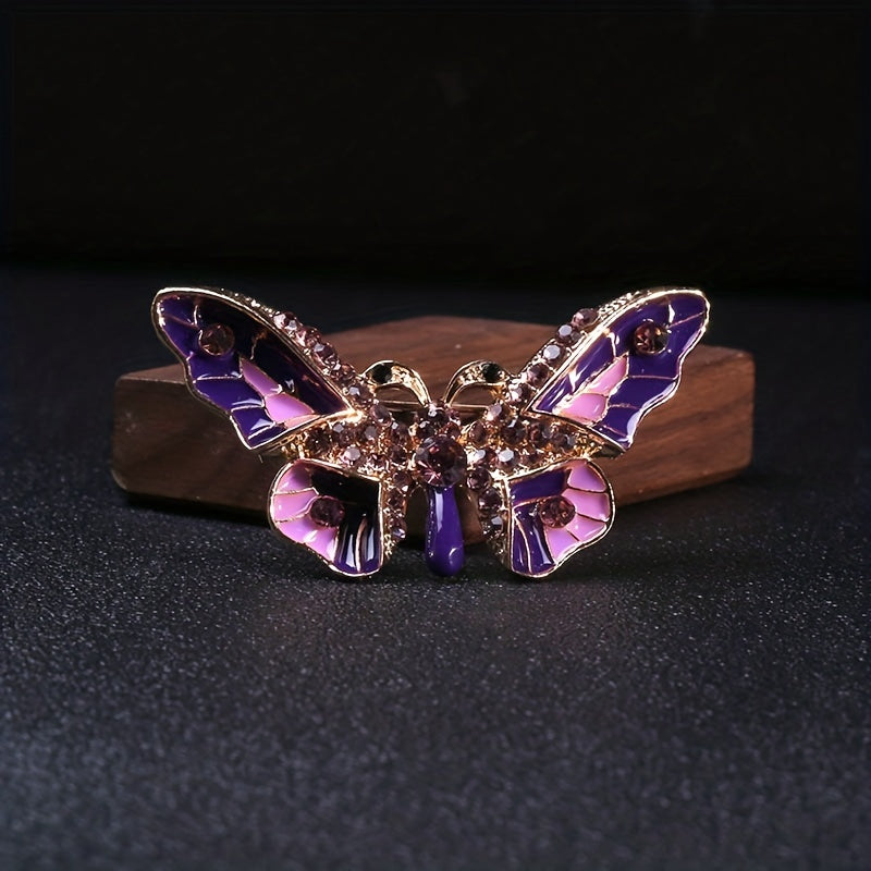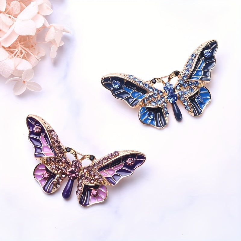 Add a touch of elegance to your outfit with this stunning butterfly brooch. Made of high-quality alloy with enamel paint and adorned with rhinestones, this accessory is perfect for women looking to elevate their style.