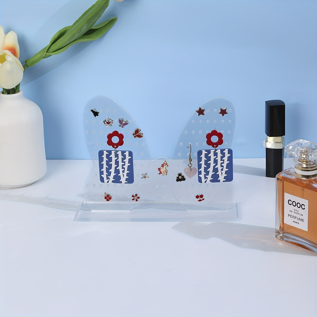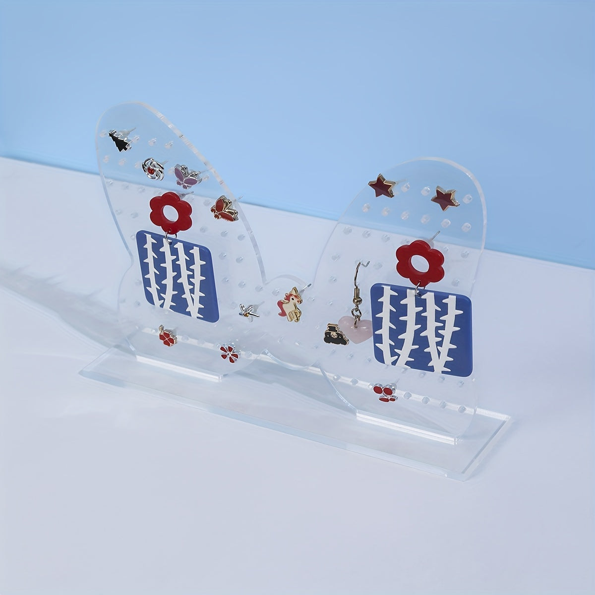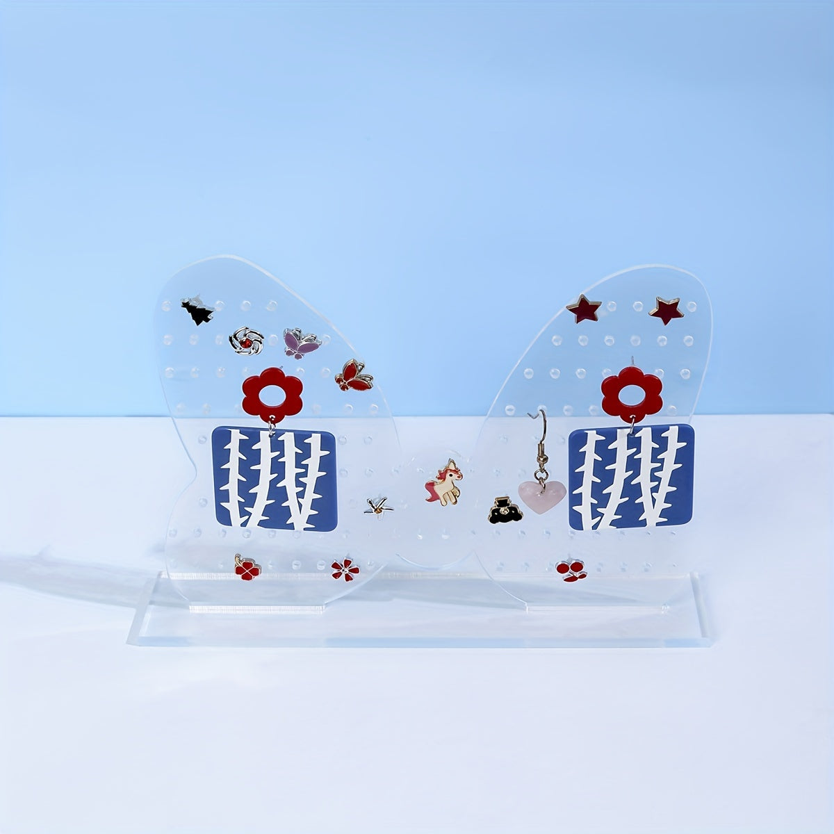 Keep your earrings and ear studs organized with this double-sided butterfly-shaped acrylic jewelry display rack. Perfect for storing and showcasing your collection.