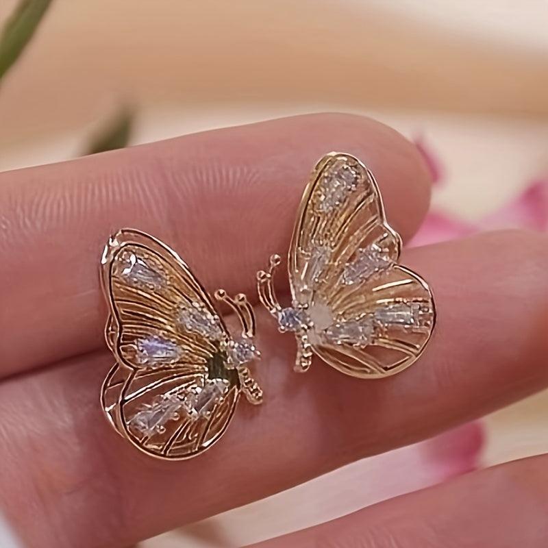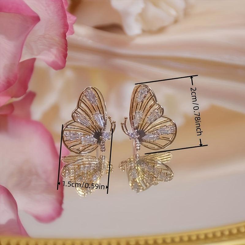 Add a touch of elegance and beauty to your look with these butterfly stud earrings. Made with copper and synthetic zirconia, these earrings are nickel plated and feature an animal theme design. Perfect for daily wear or for vacation, these earrings also make a great Valentine's gift. The April birthstone adds a special touch to these stunning earrings.