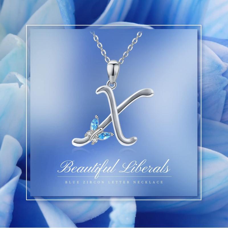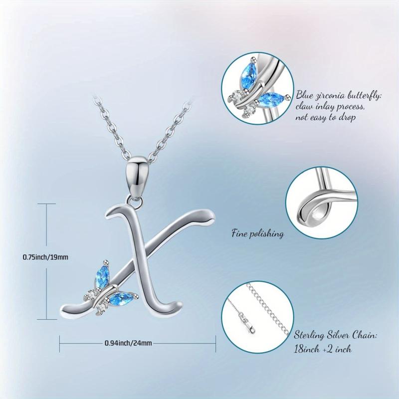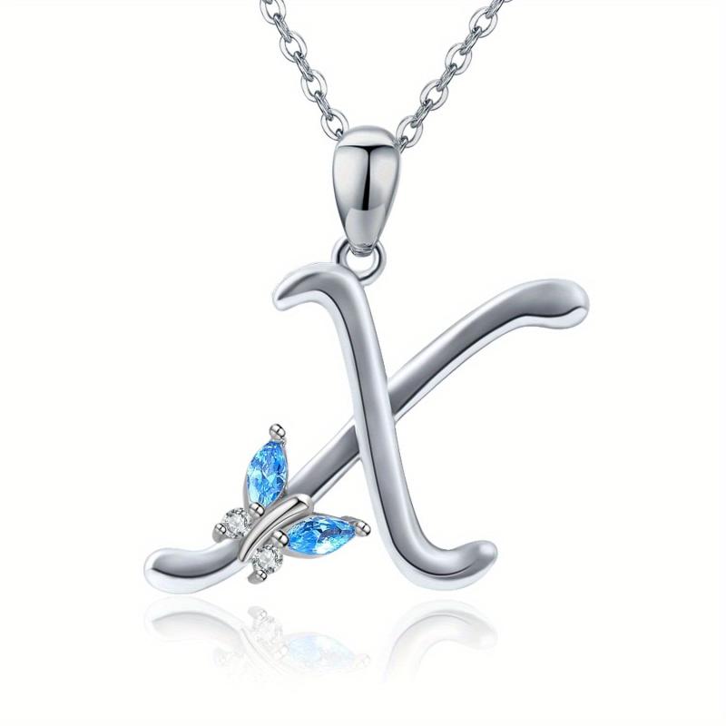 This stunning silvery name necklace features a butterfly design with a beautiful X letter pendant. It's a perfect piece of personalised jewellery for women.