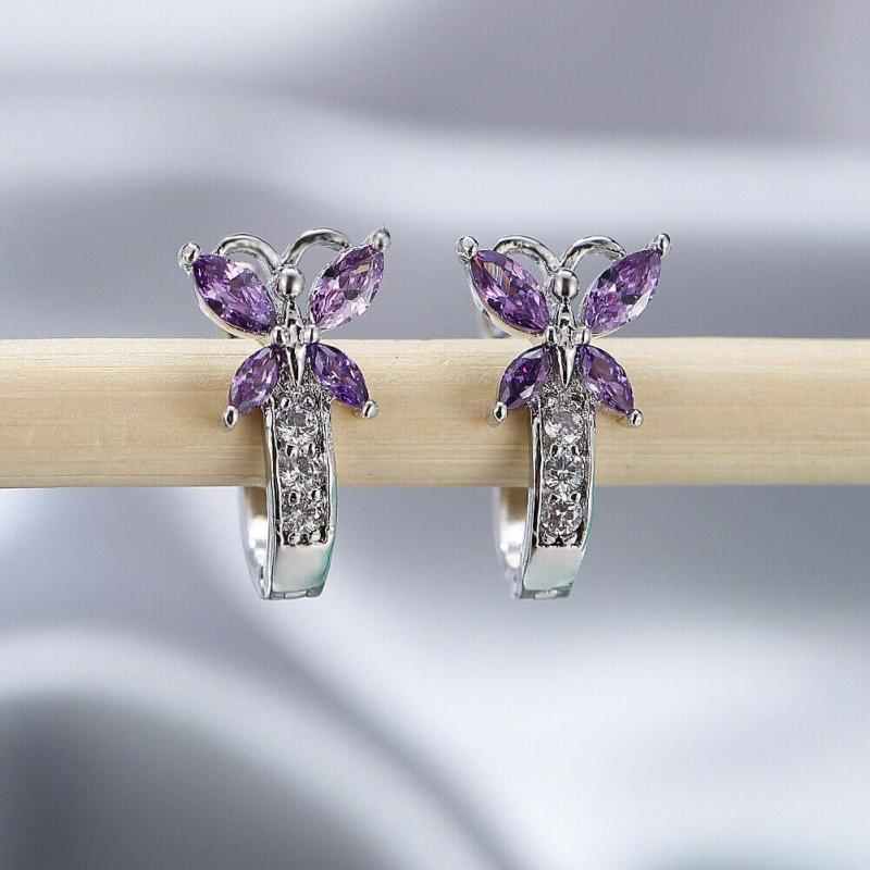 Add a touch of whimsy to your outfit with these elegant butterfly shaped zirconia earrings. Perfect for women and girls who love unique jewelry pieces.