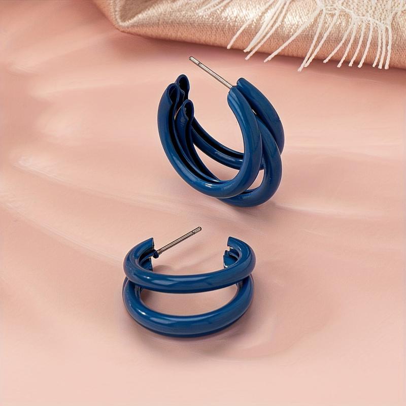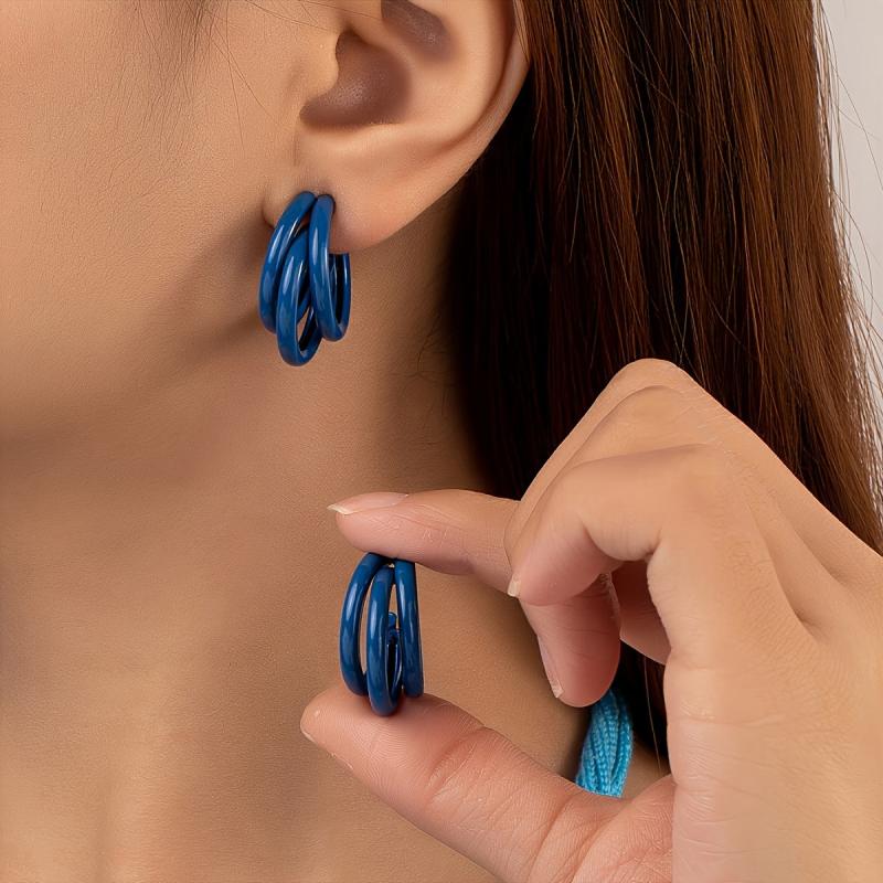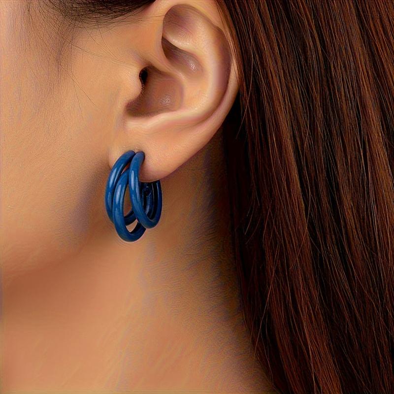 Elevate your ear game with this set of versatile earrings. Includes a pair of C-shaped iron earrings and a pair of triple strand earrings, perfect for daily wear and special occasions.