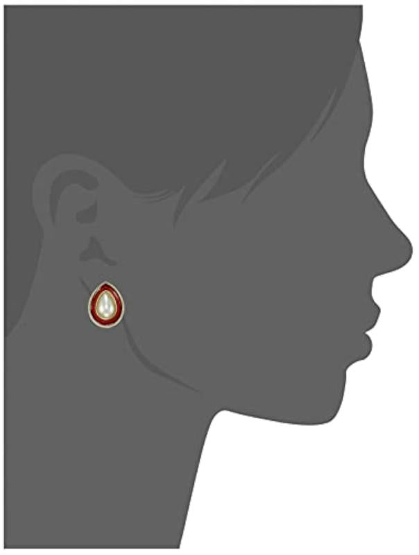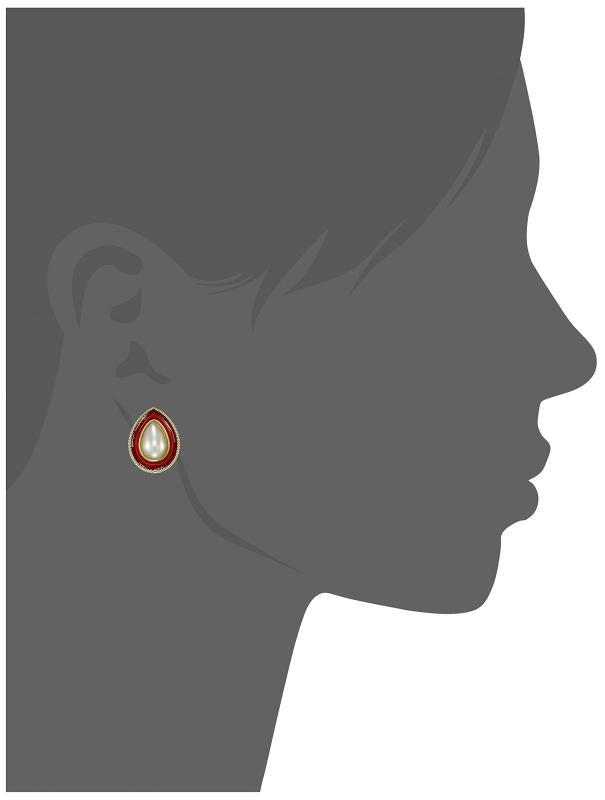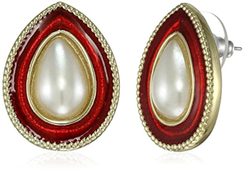 Add a touch of elegance to your look with these stunning cardinal stud earrings featuring drop pearls and red enamel detailing.