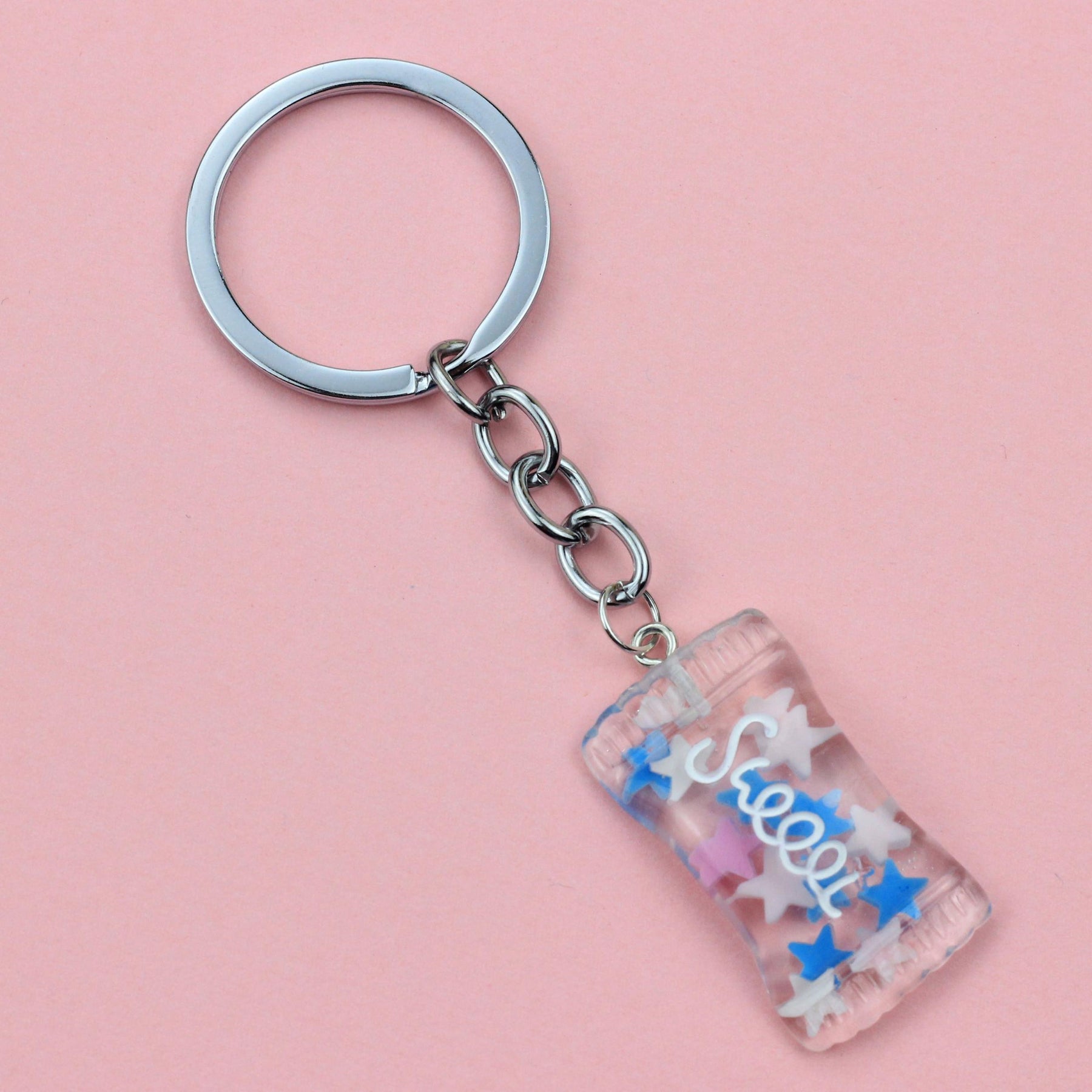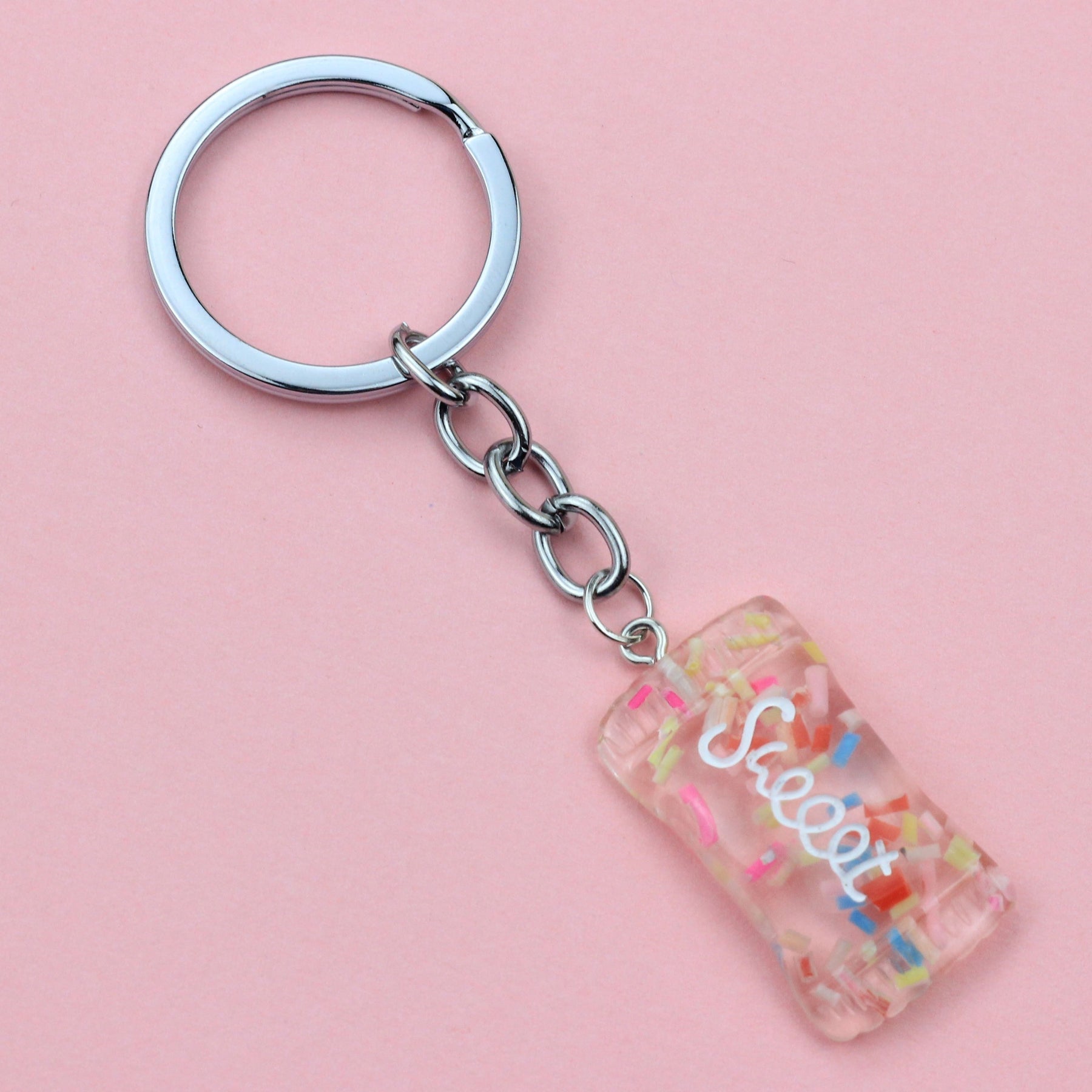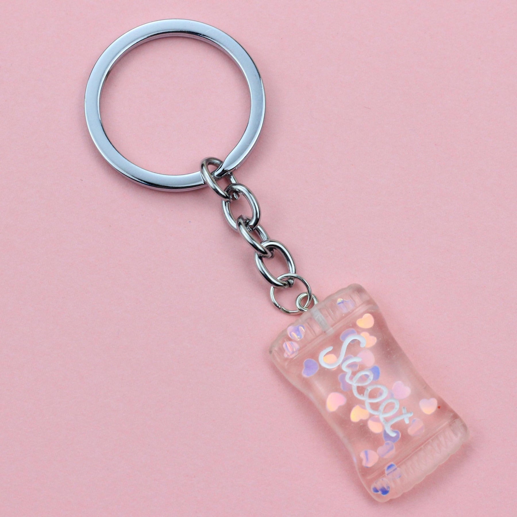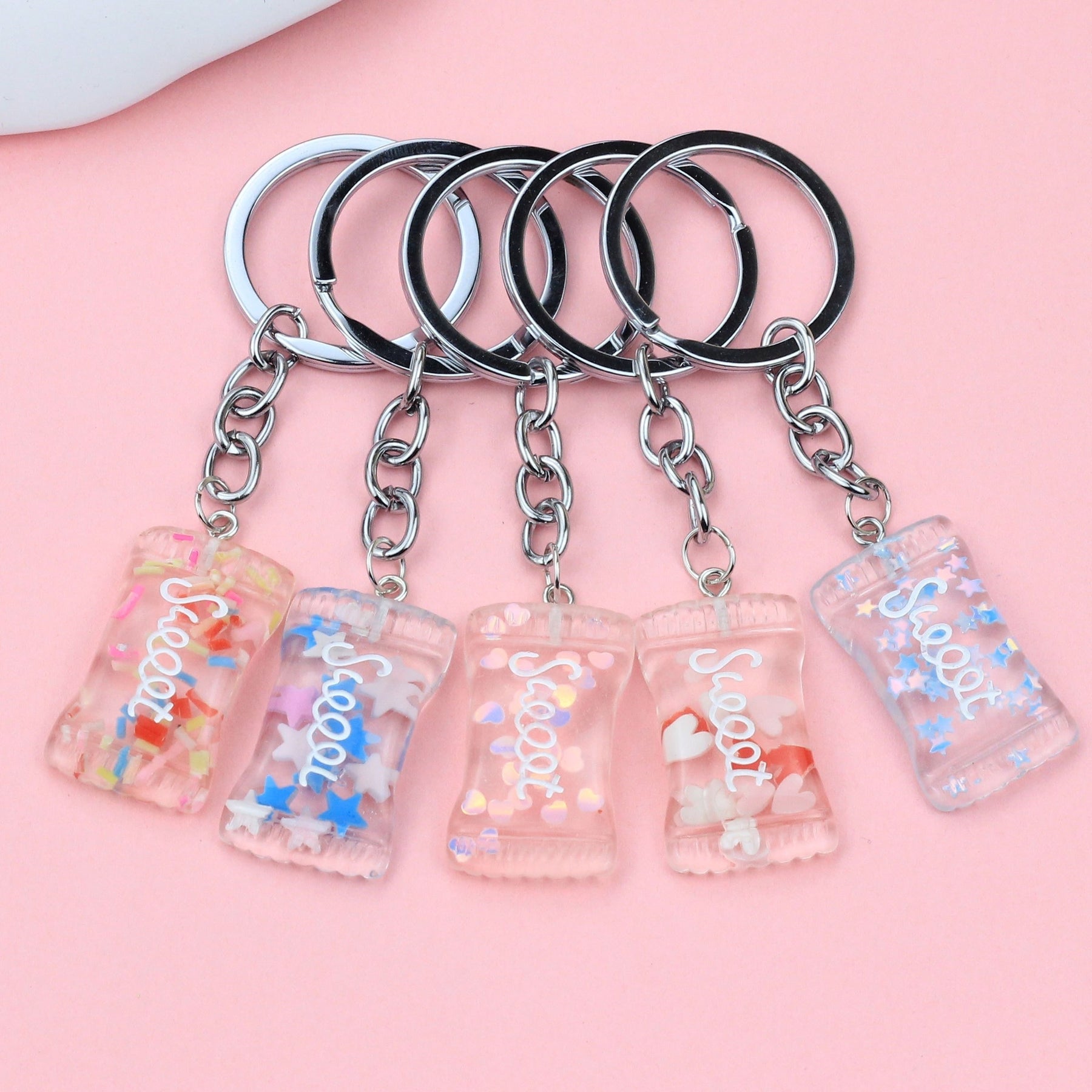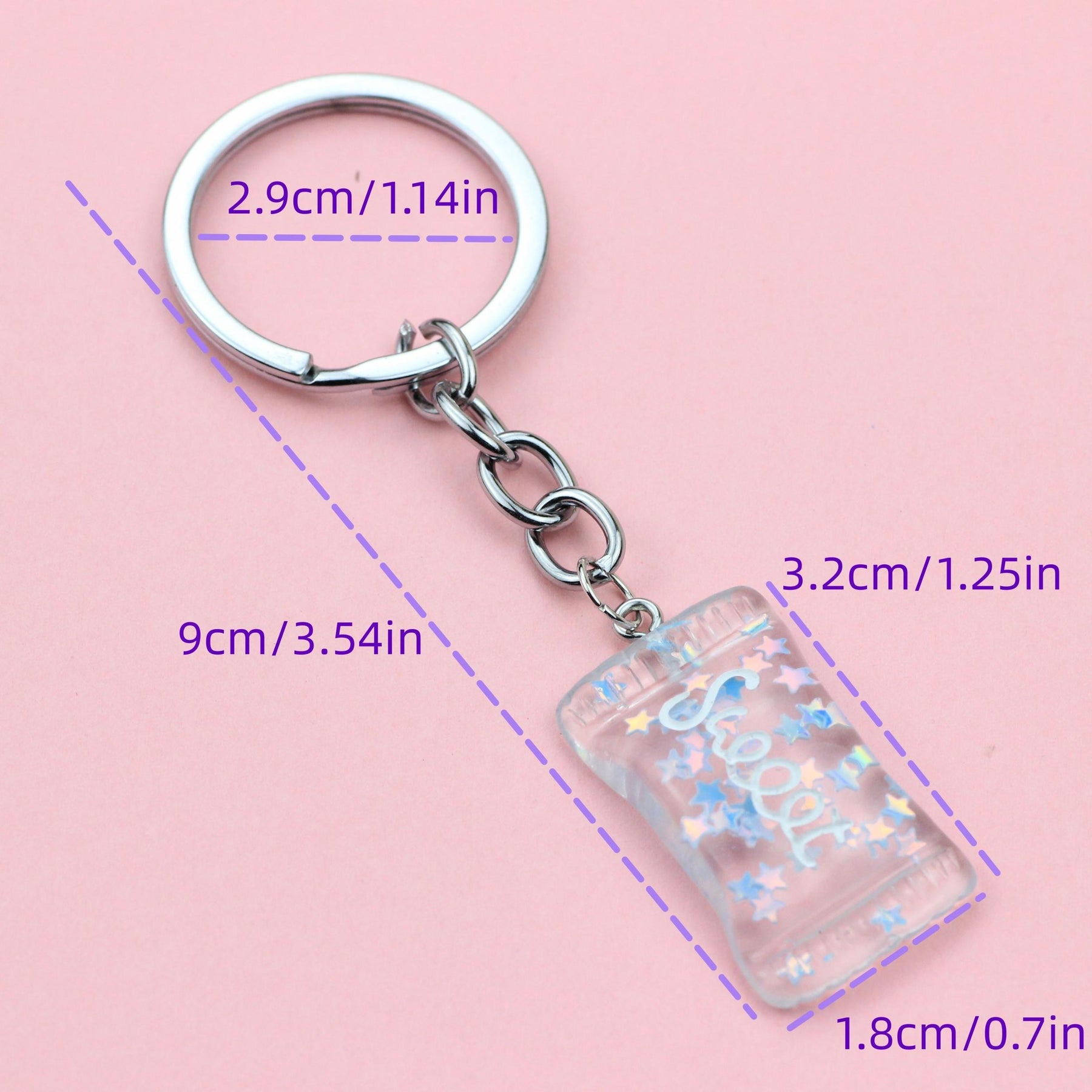 Add some fun and charm to your school bag with this cute cartoon candy keychain spoon buckle. It's a creative accessory that will brighten up your day.