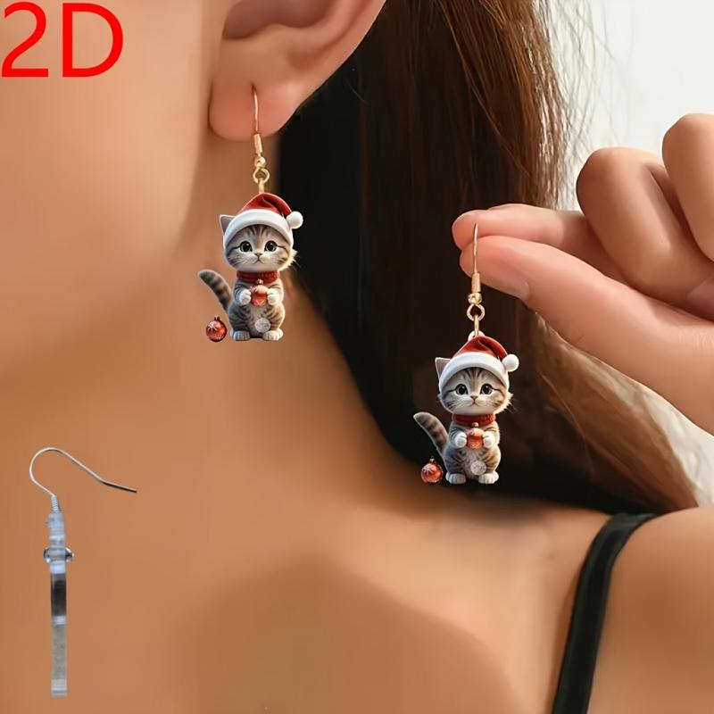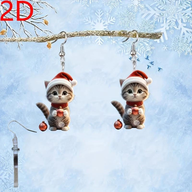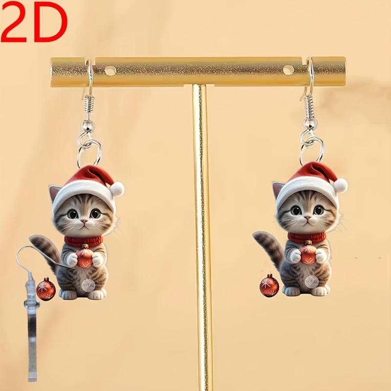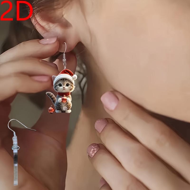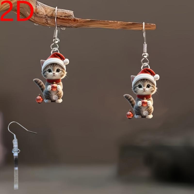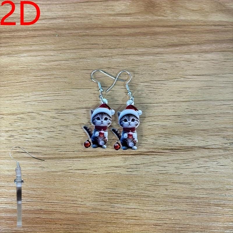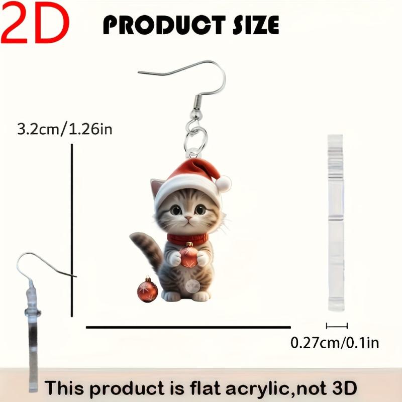 Adorable Cartoon Cat Santa Hat Dangle Earrings in Mini Red Christmas Cap Kitten Pendant Jewelry. Perfect for the holiday season!