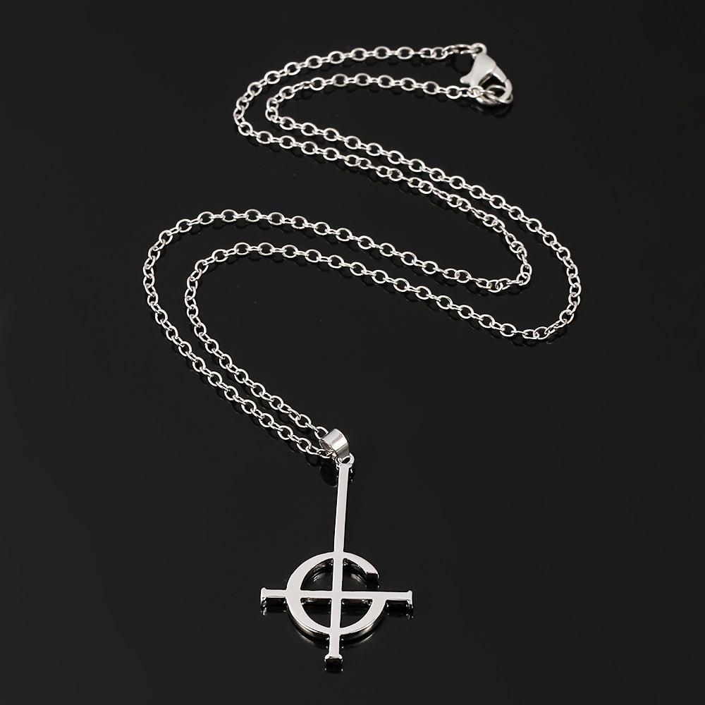 This quirky necklace features a cross ghost pendant inspired by the Ghost Rock Band, perfect for those who love gothic and unique jewelry pieces.