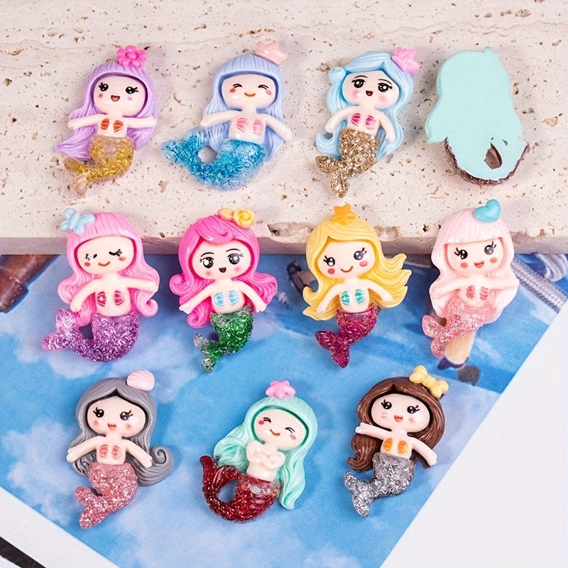 Adorable cartoon mermaid charm resin rubber accessories for DIY phone case decoration.