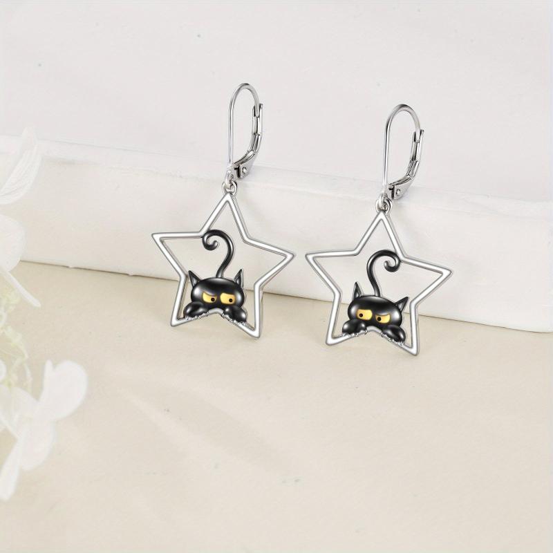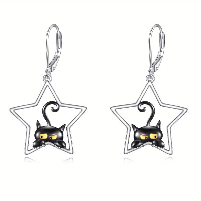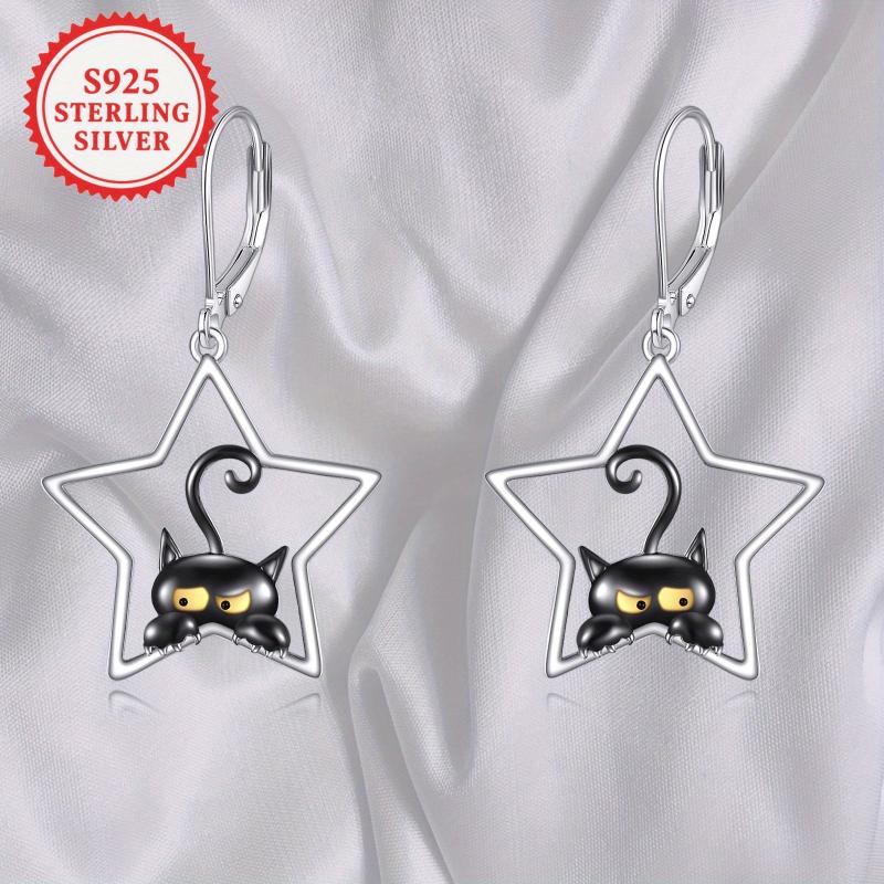 These charming cat dangle earrings are made of 925 sterling silver with lever back closure. Perfect for cat lovers and a great Christmas gift.